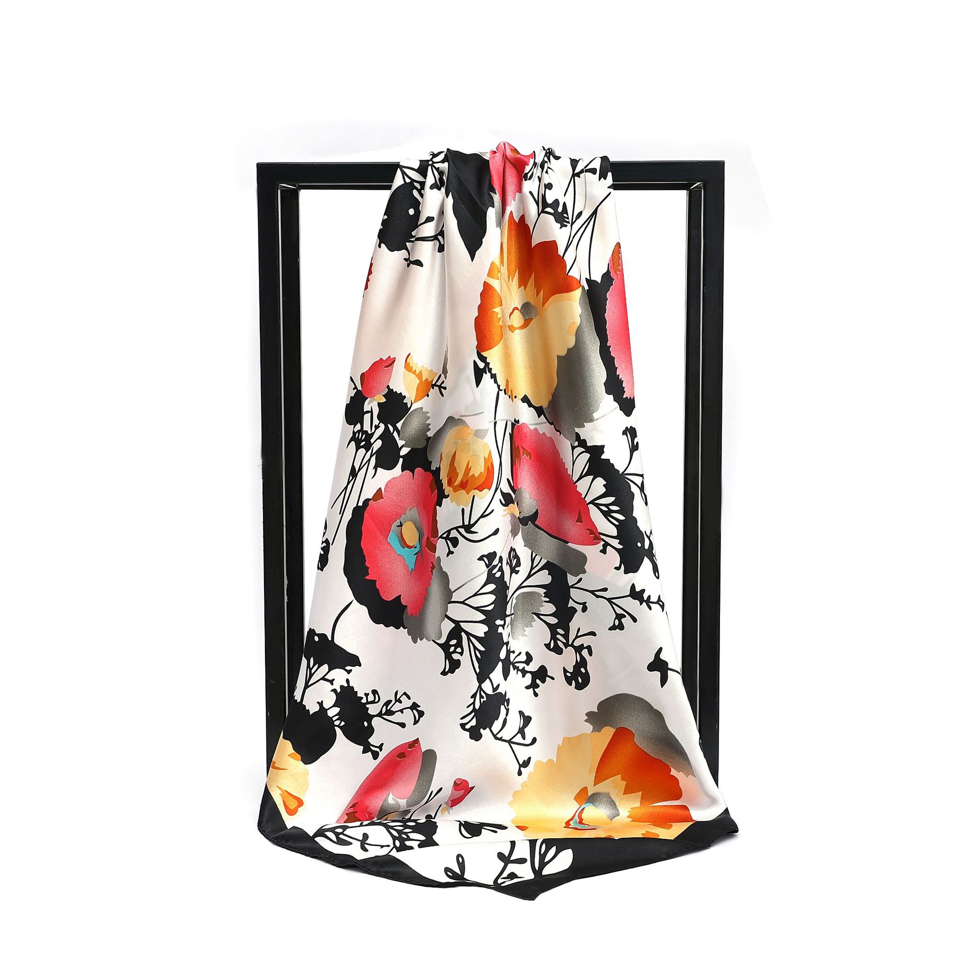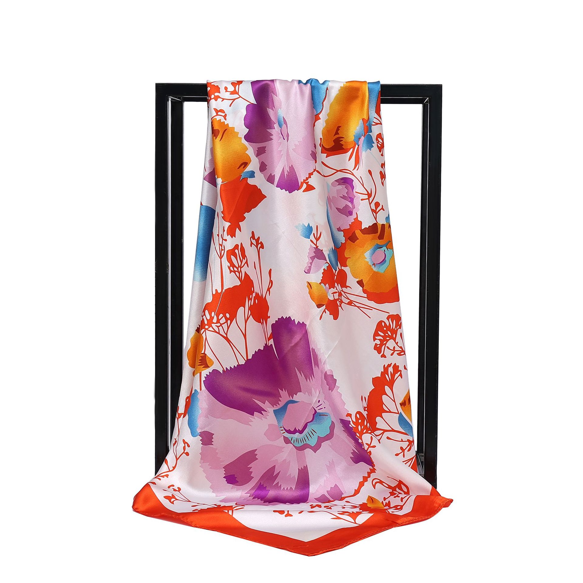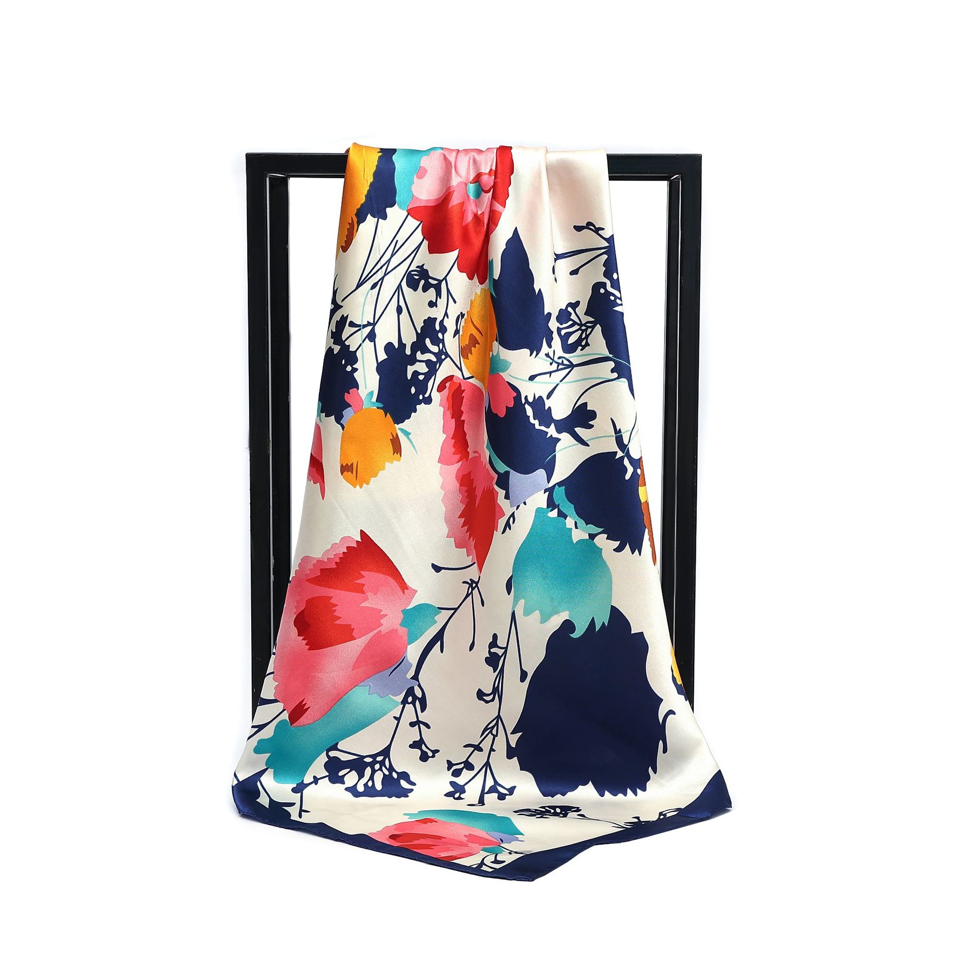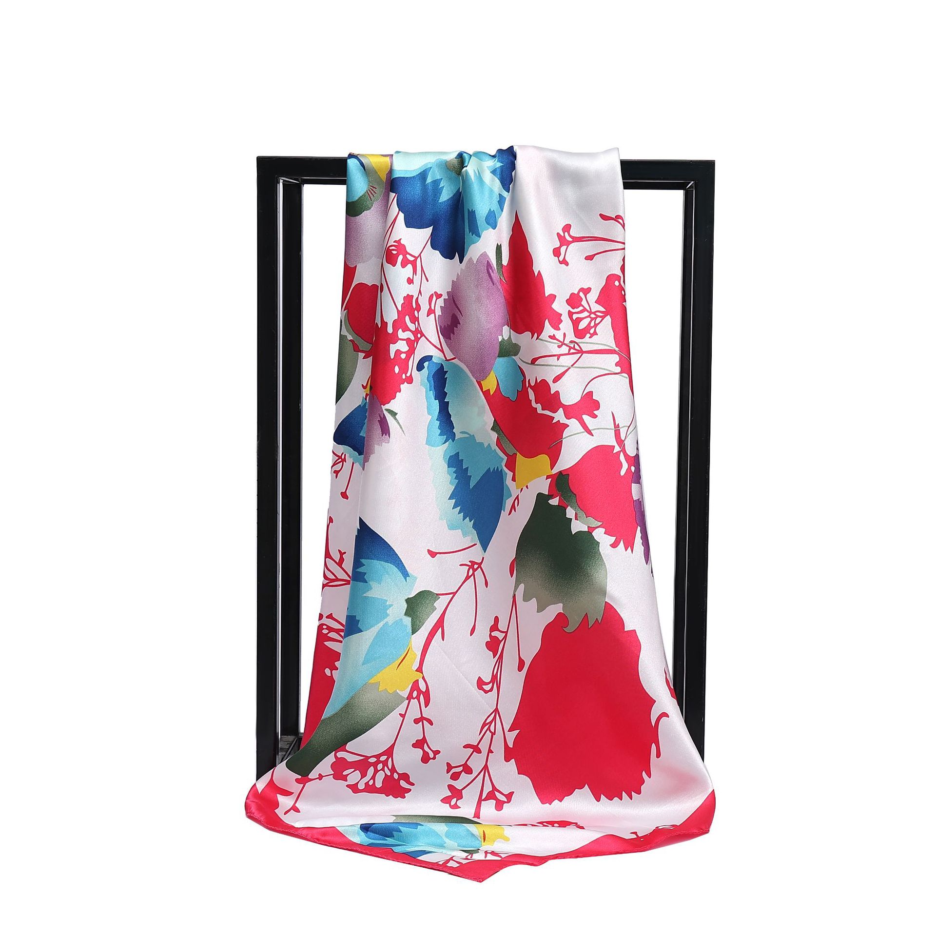 90cm 새틴 스퀘어 스카프 유럽과 미국의 클래식 꽃 새틴 시뮬레이션 실크 스카프 여성 다용도 목도리 크로스 보더 스카프