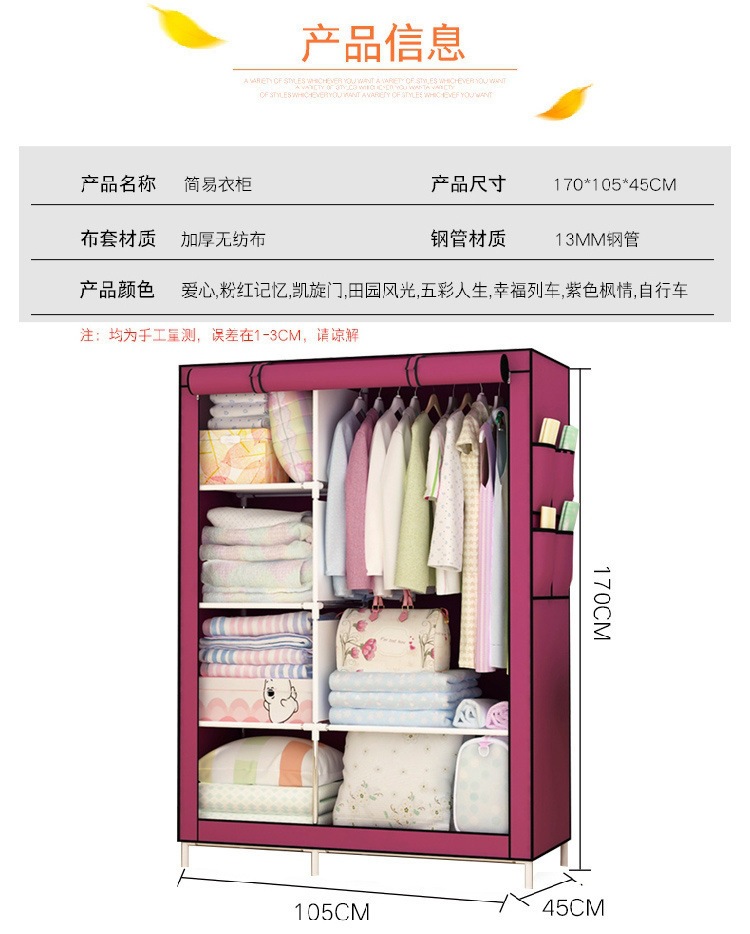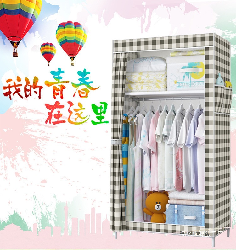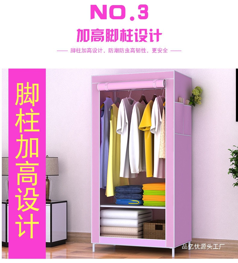 옷장 경제형 간편 천 옷장 가정용 침실용 두꺼운 강철 파이프 임대용 옷장 올스틸 프레임 수납장스토어 가기