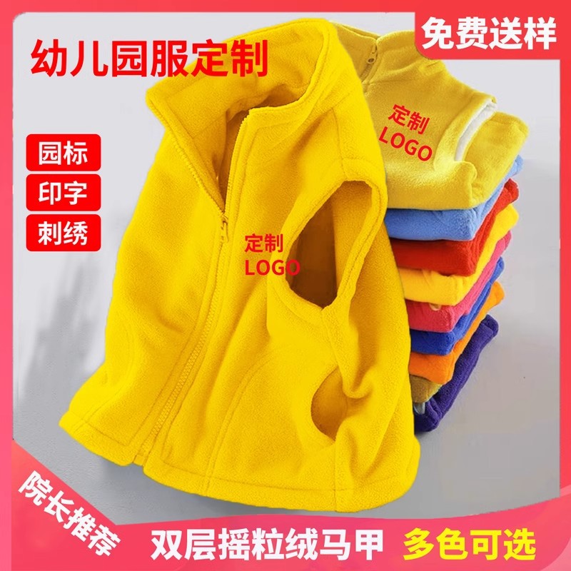 아동용 조끼, 봄, 가을, 겨울 유행 겉옷, 중대형 아동용 남녀 폴라 플리스 조끼, 대학 스타일 유치원복 라운드 라벨스토어 가기