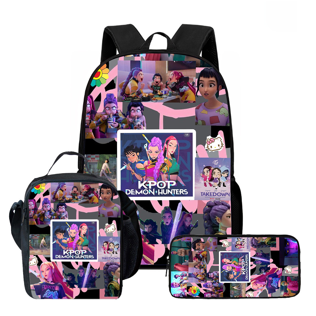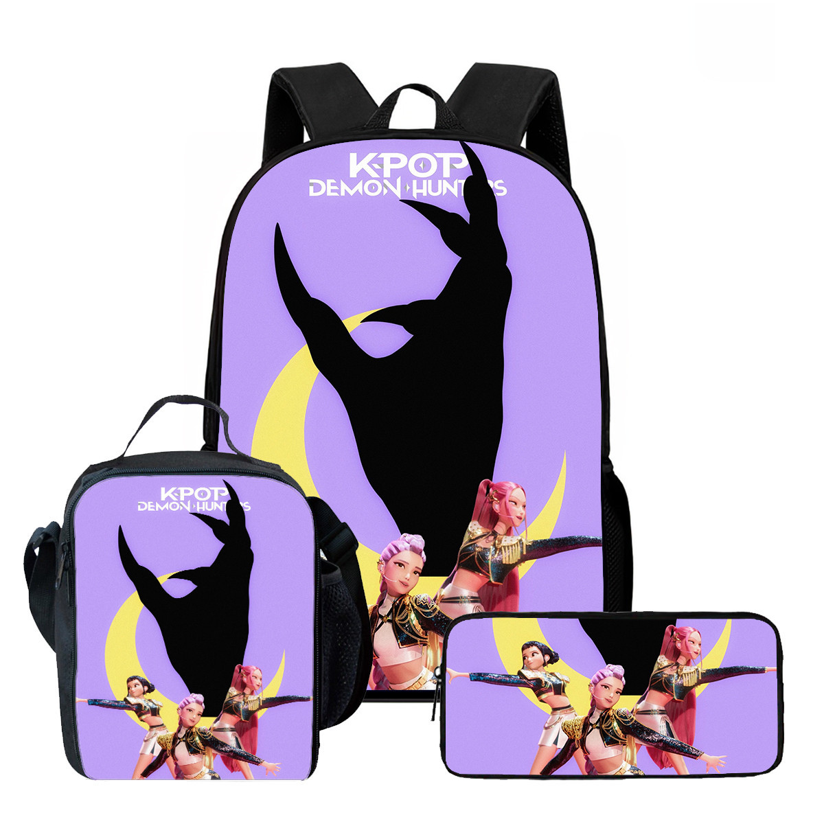 사냥꾼 마녀 그룹 학교 가방 점심 가방 연필 가방 학생 배낭 만화 배낭 어린이 가방 3 피스 세트스토어 가기