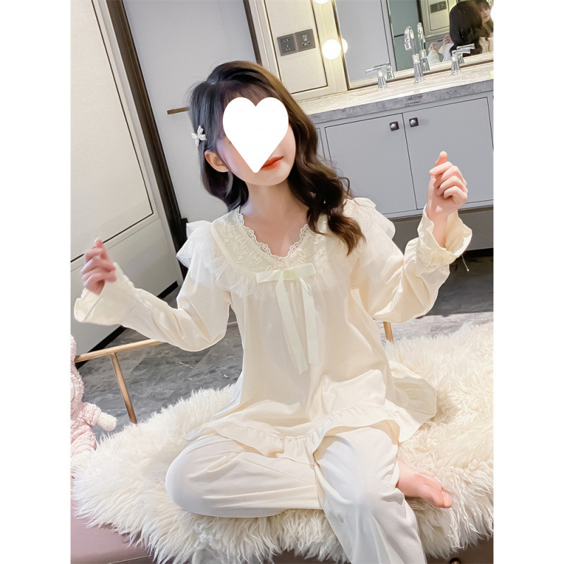 여아 잠옷 봄, 가을 아동복 세트 2025 새로운 스타일 중대형 어린이 소녀 긴팔 인터넷 연예인 면스토어 가기