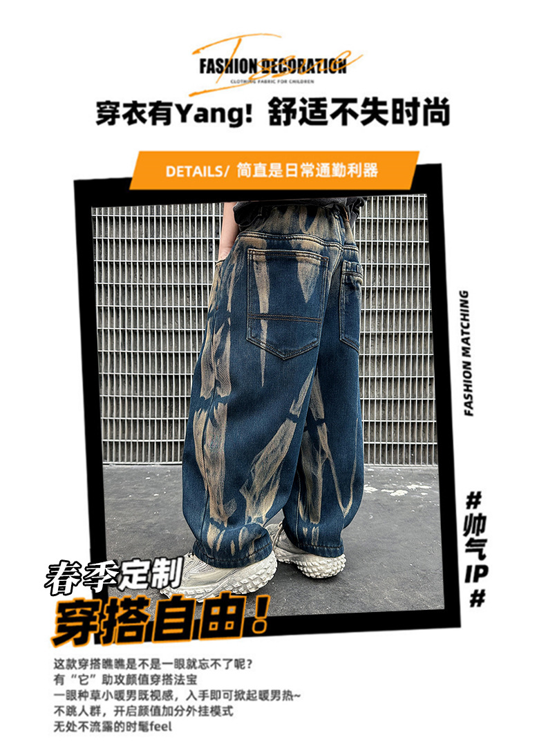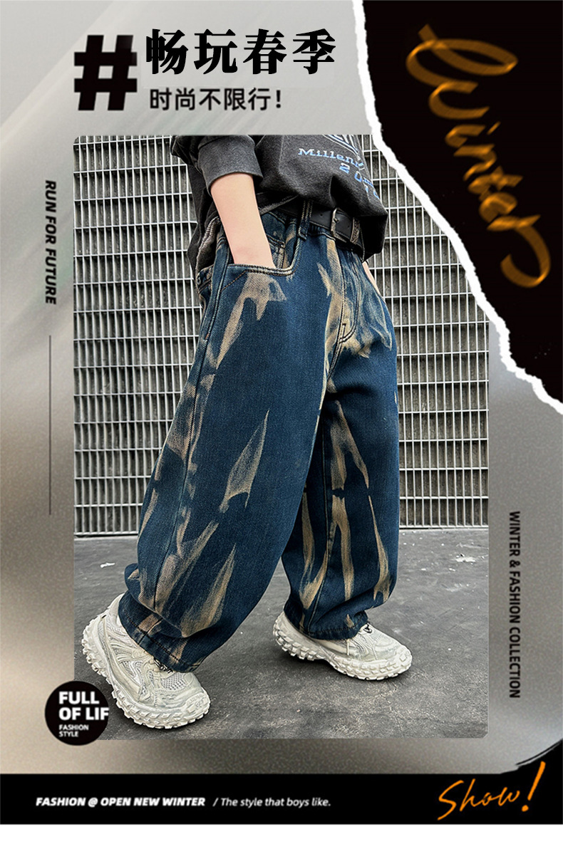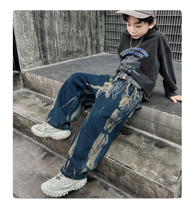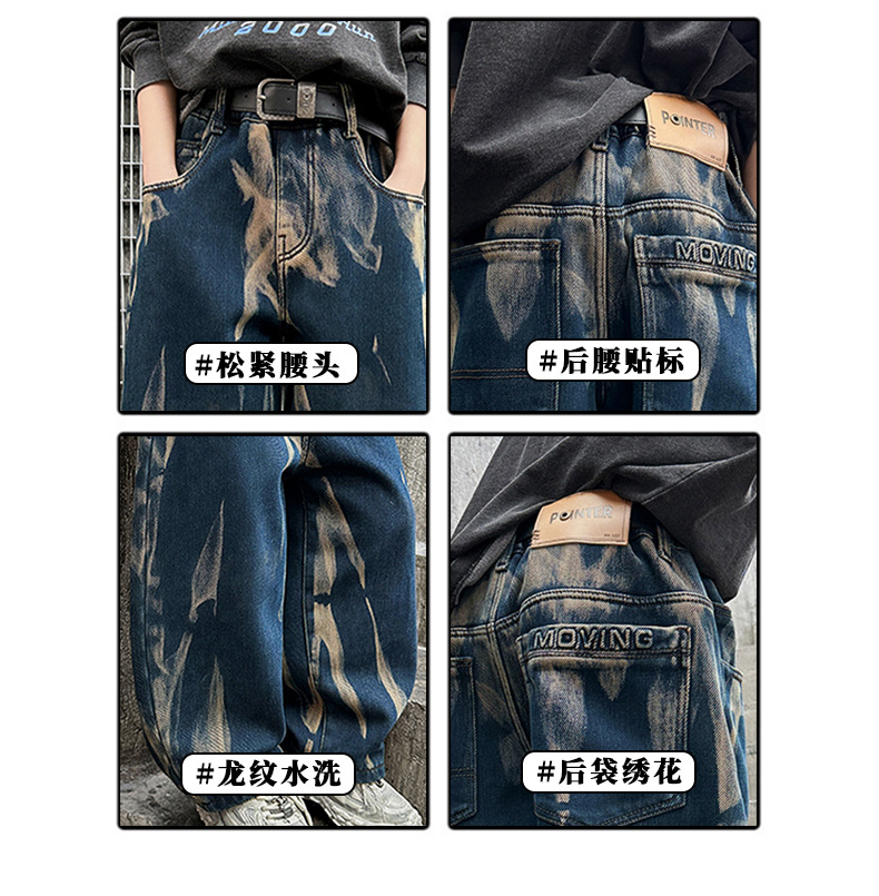 남아 바지 봄 가을 스타일 2026 신상 중대형 아동 가을옷 남자아이 멋진 스타일 아동 가을 타이다이 청바지
