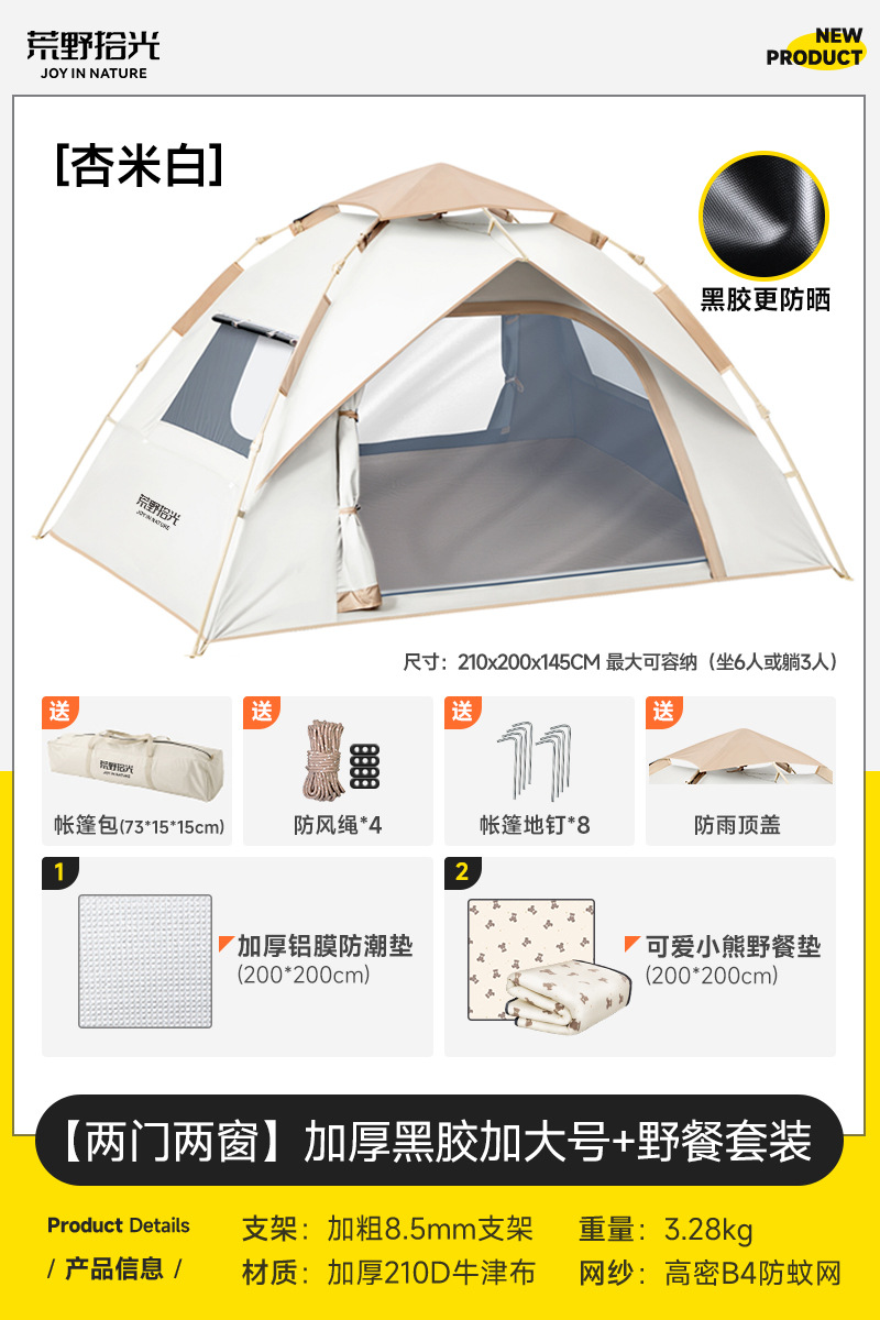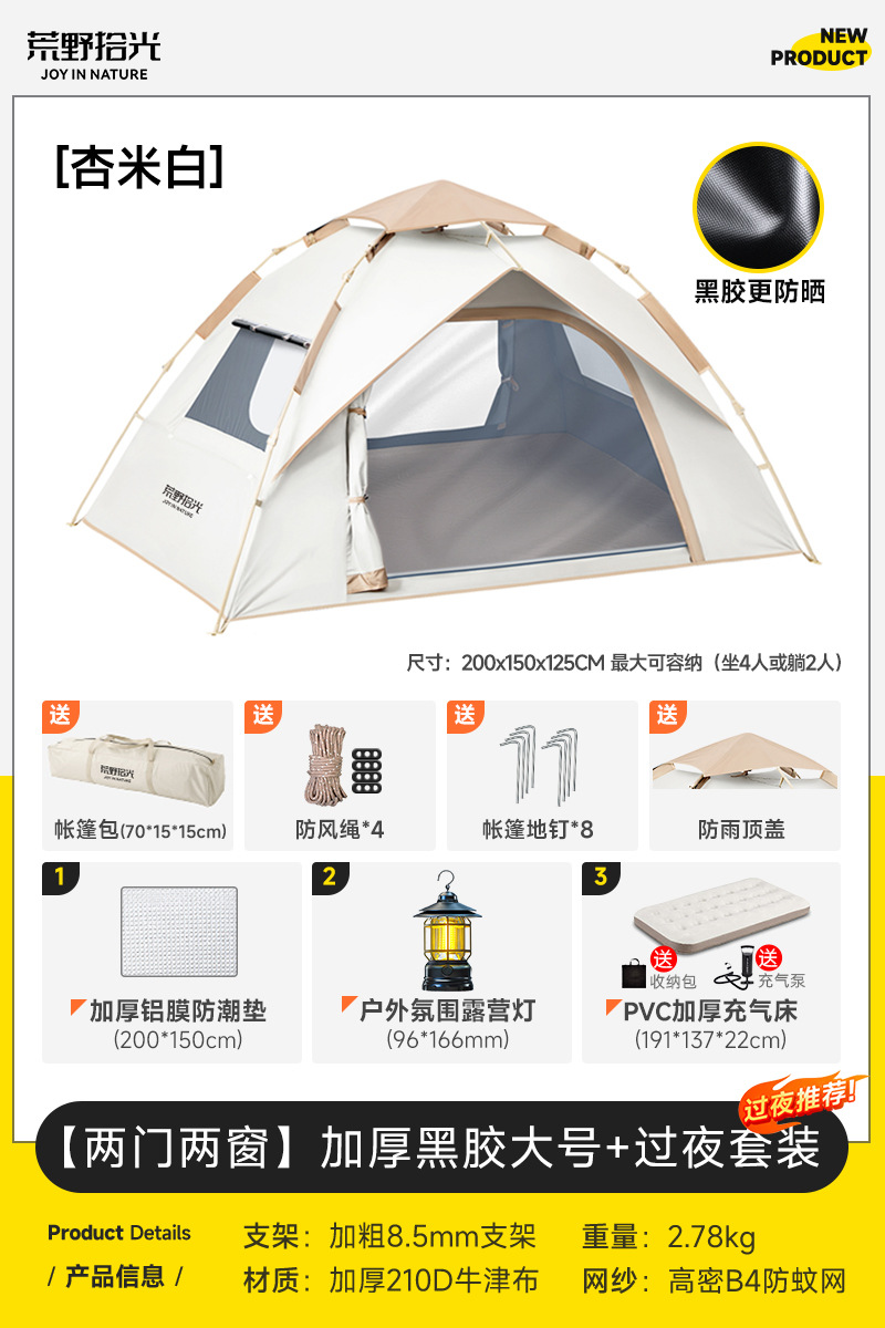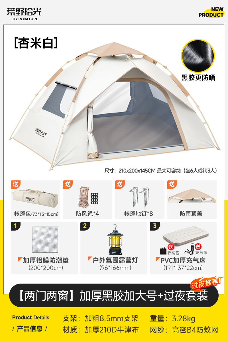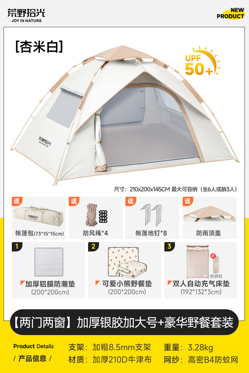 텐트 야외 접이식 휴대용 야외 캠핑 장비 캠핑 밤새 방수 두꺼운 완전 자동 해변 실내