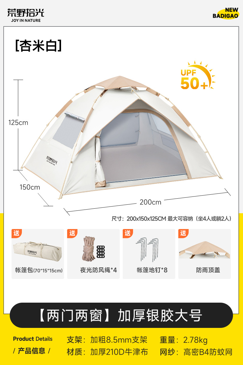 텐트 야외 접이식 휴대용 야외 캠핑 장비 캠핑 밤새 방수 두꺼운 완전 자동 해변 실내스토어 가기