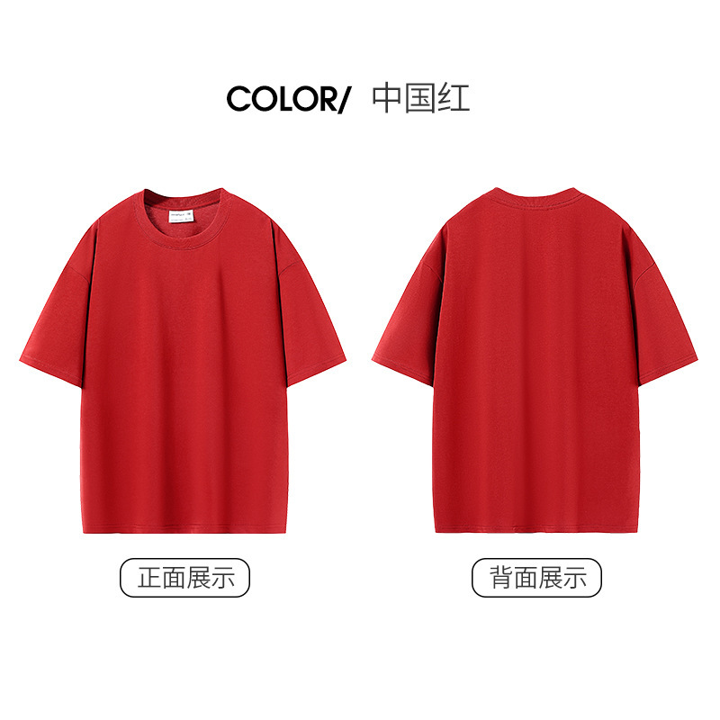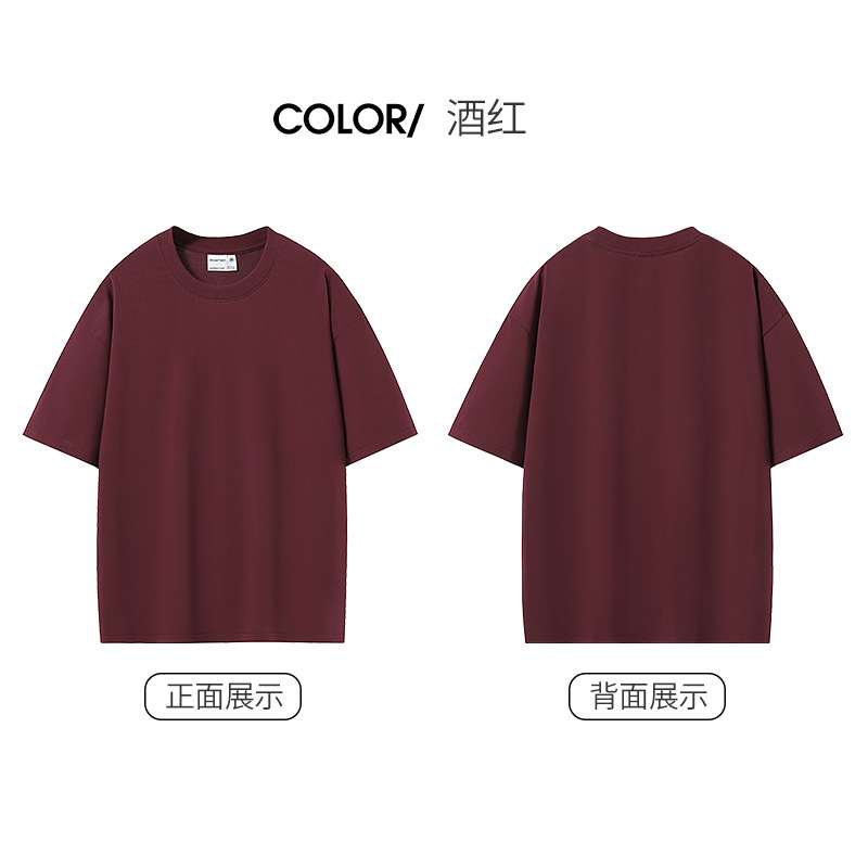 트렌디 브랜드 헤비급 280g 더블 원사 순면 오프 숄더 반팔 티셔츠 남성용 및 여성용 라운드 넥 대형 루즈 보텀 셔츠 탑