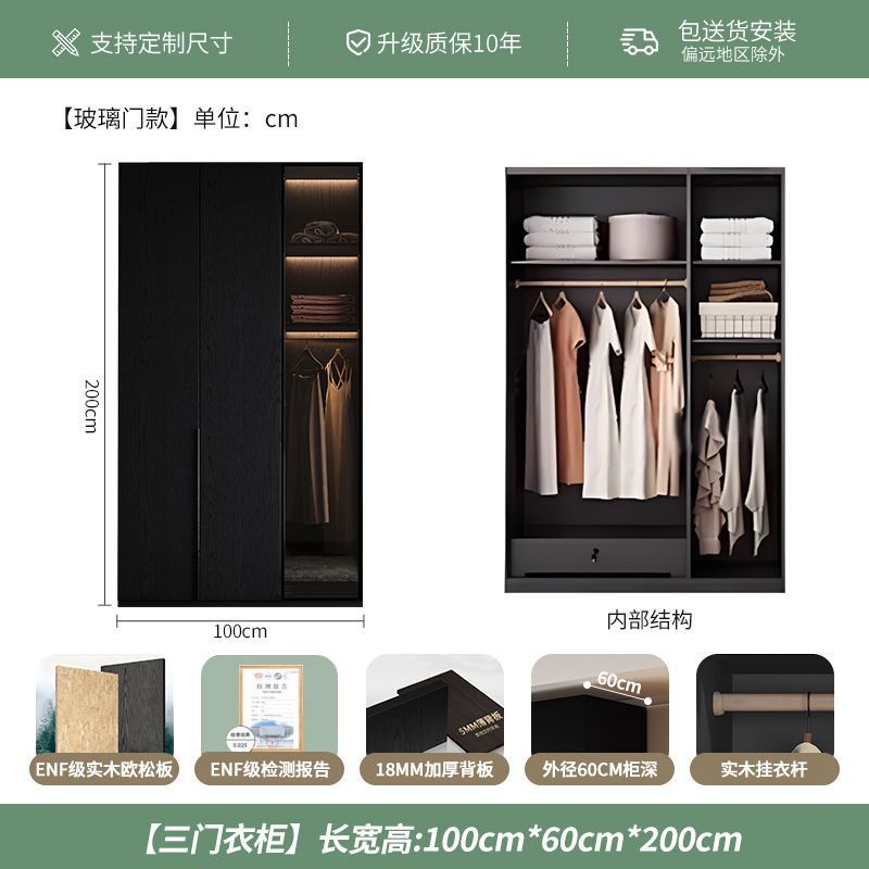 옷장 홈 침실 조명 럭셔리 캐비닛 홈 침실 옷장 강화 유리 도어 현대 간단한 작은 아파트 옷장