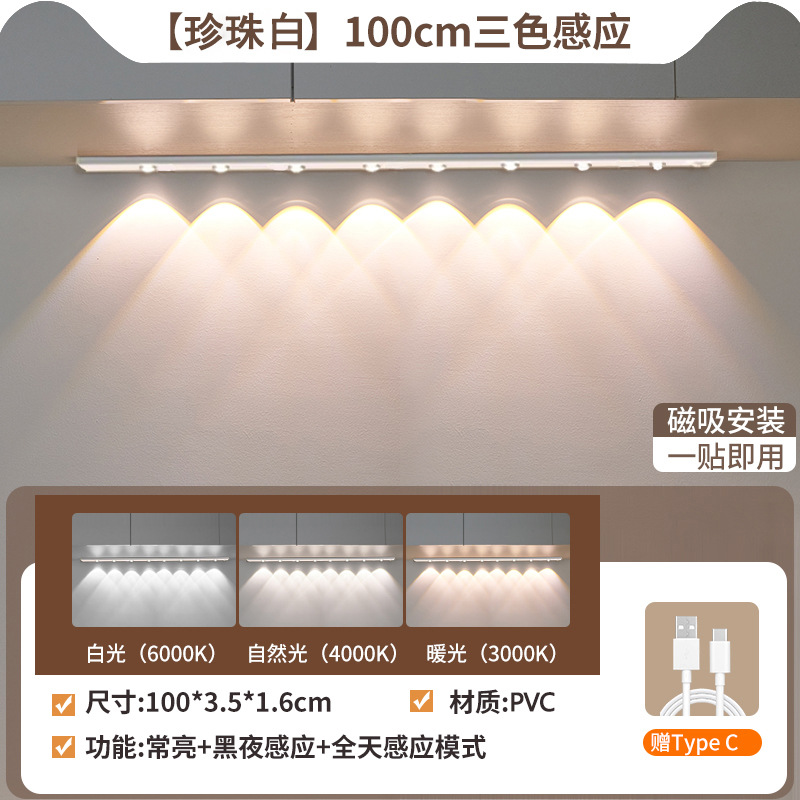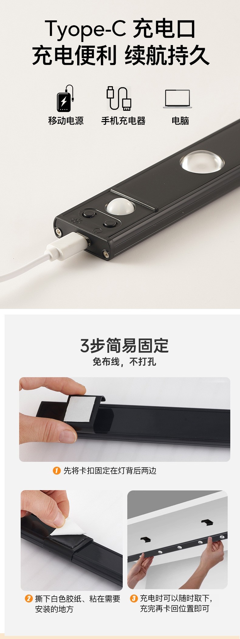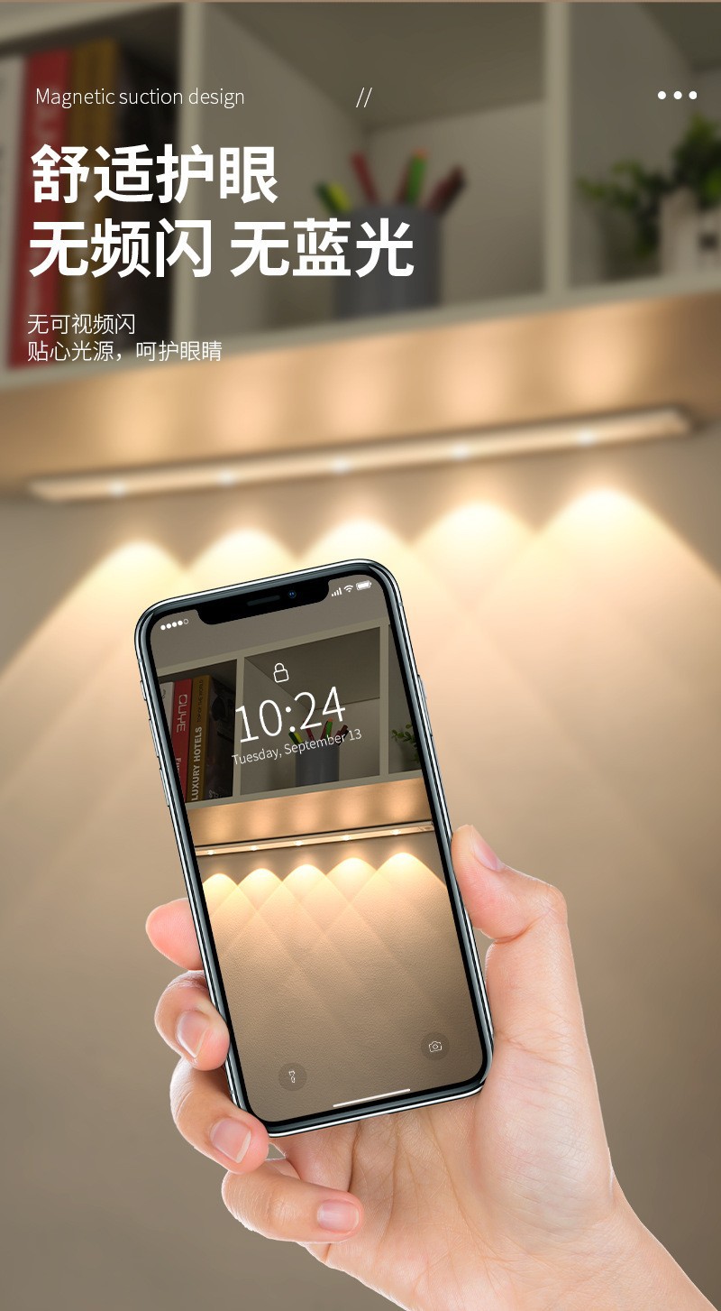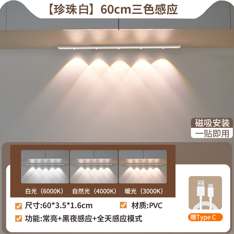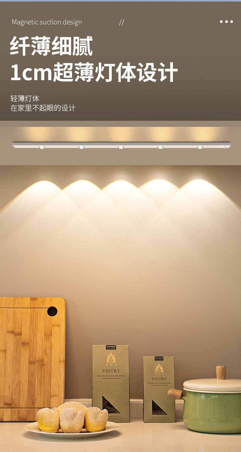 지능형 LED 인체 센서 램프 초박형 고양이 눈 힐 라이트 스트립 충전식 자체 접착 옷장 와인 캐비닛 캐비닛 라이트 스트립