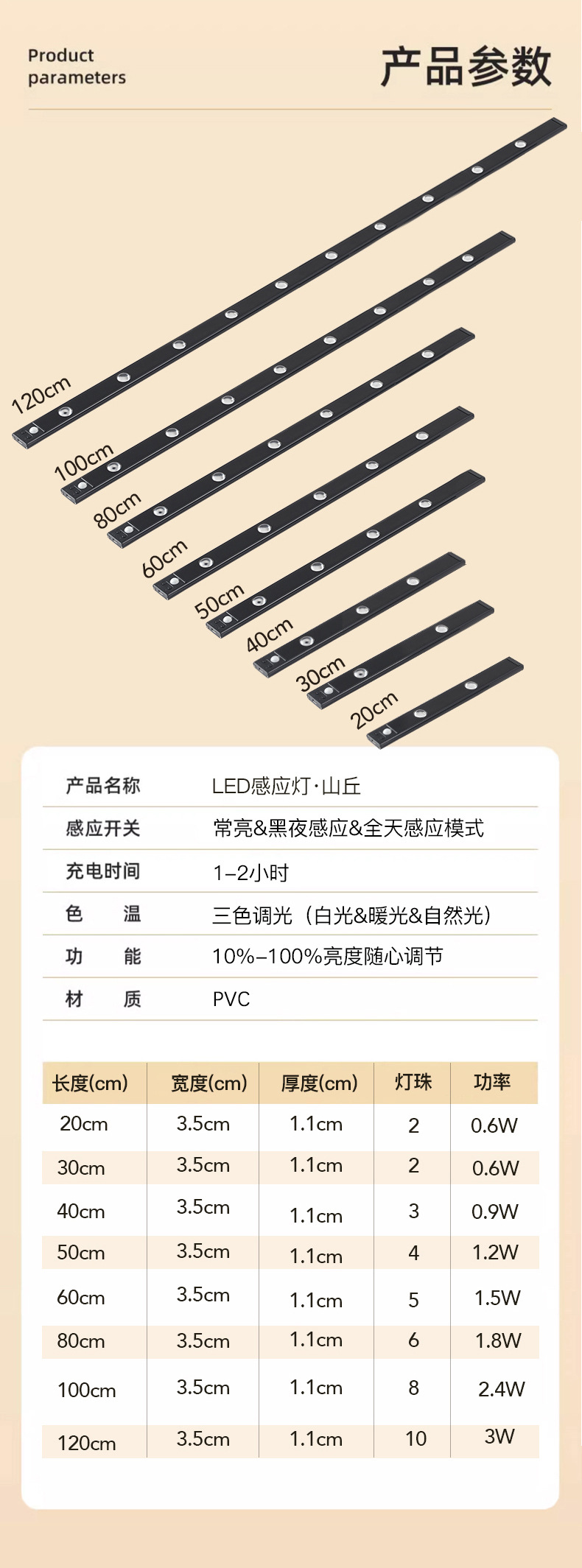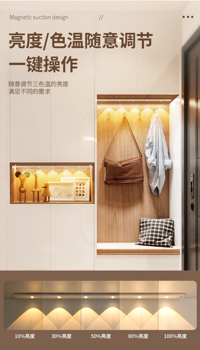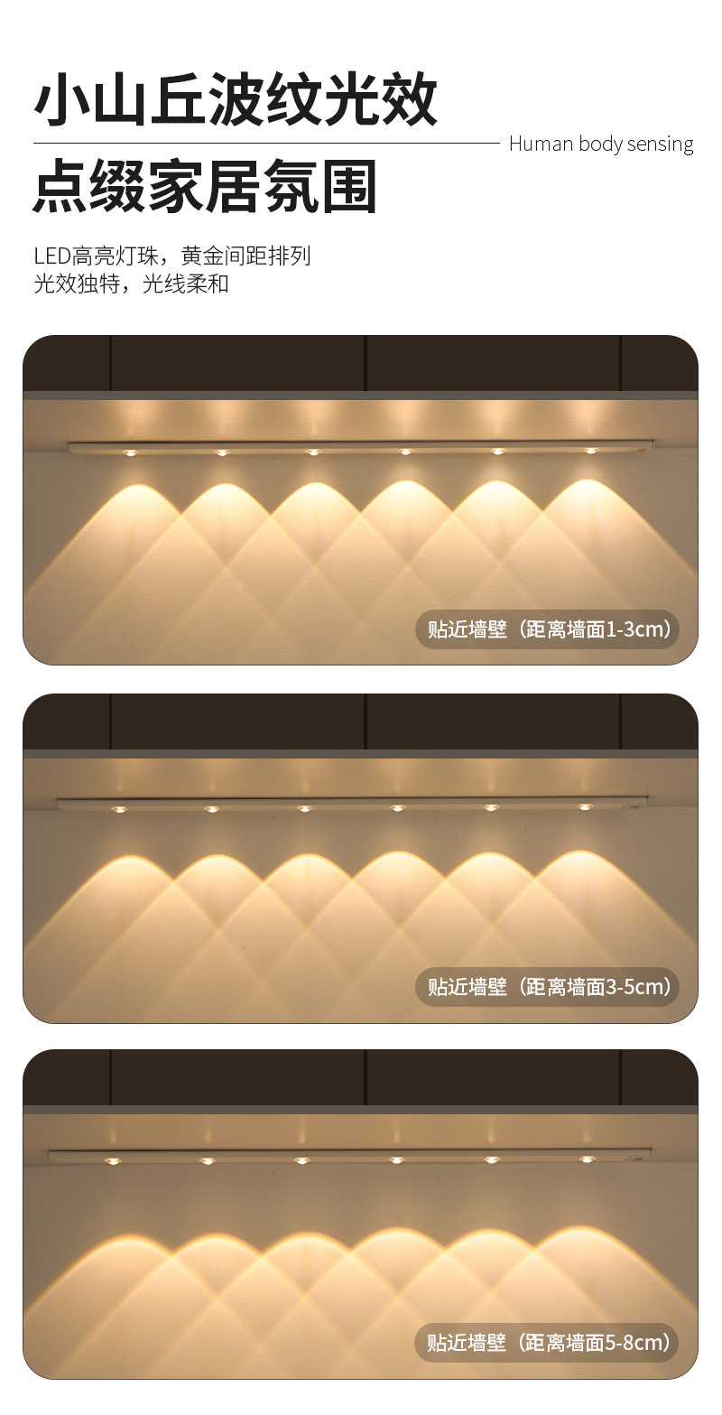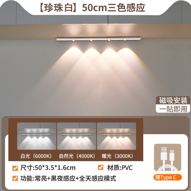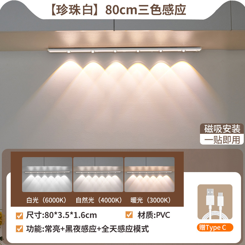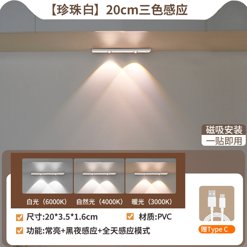 지능형 LED 인체 센서 램프 초박형 고양이 눈 힐 라이트 스트립 충전식 자체 접착 옷장 와인 캐비닛 캐비닛 라이트 스트립