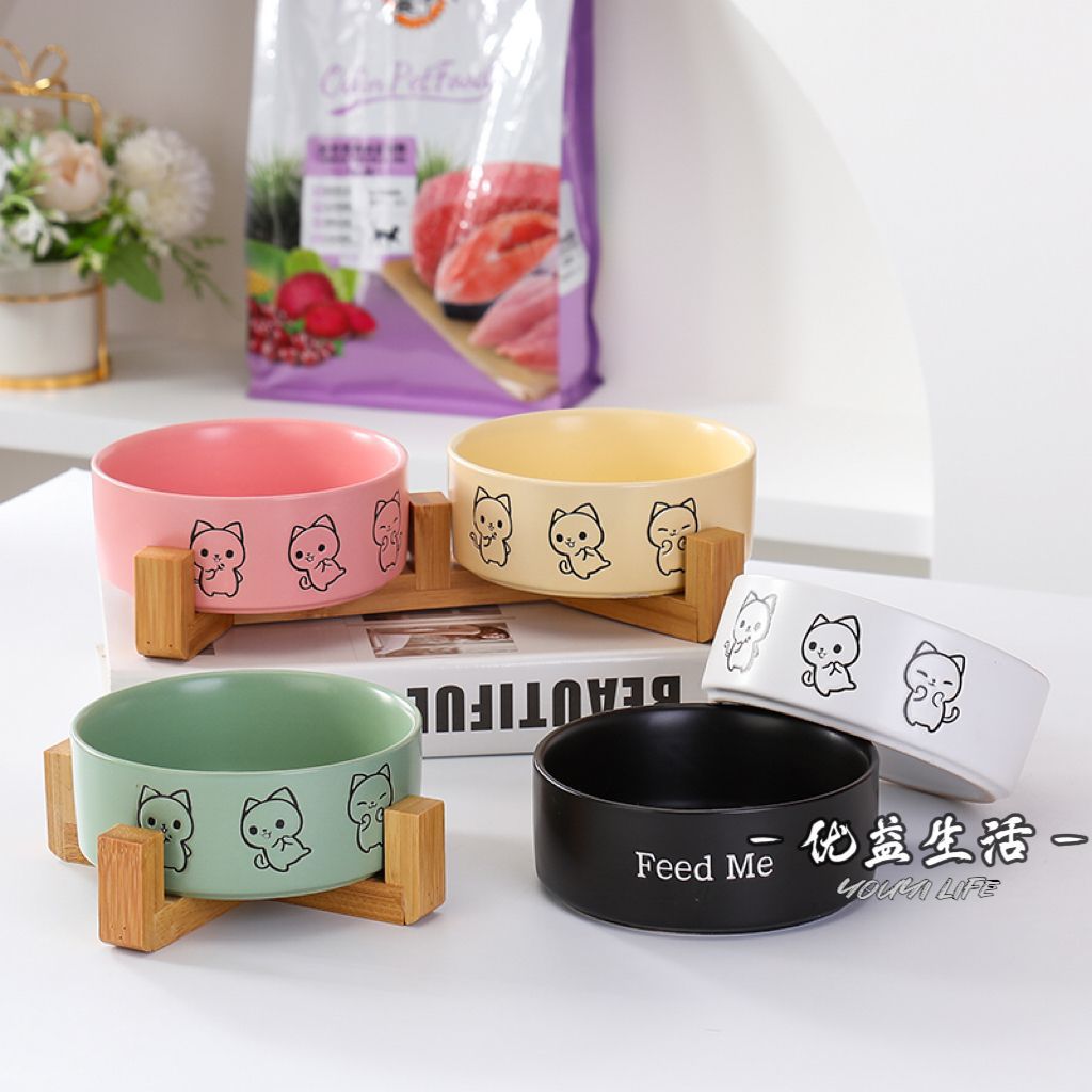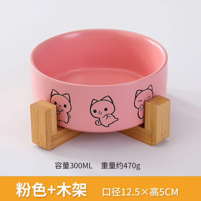 • 신제품: 핑크 세 새끼 고양이 그릇 5inch 나무 스탠드 포함