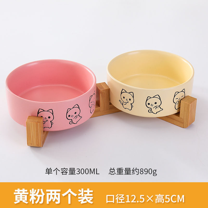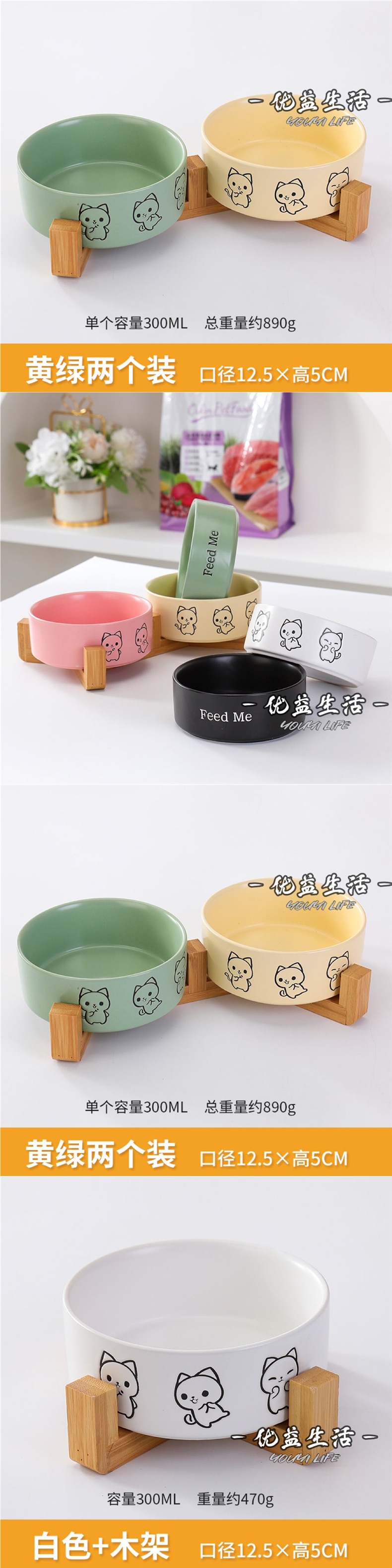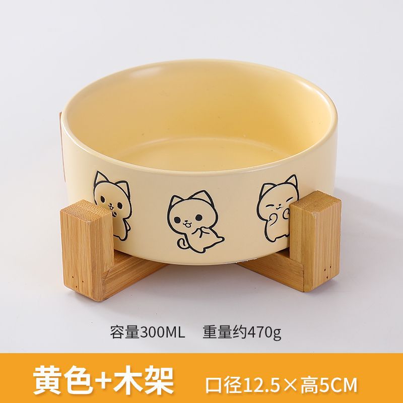 • 신제품: 노란색 새끼 고양이 세 마리 그릇 5inch 나무 스탠드 포함