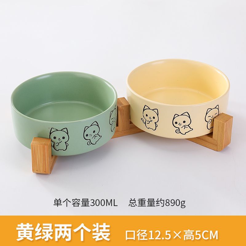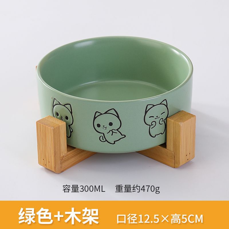 • 신제품: 녹색 새끼 고양이 세 마리 그릇 5inch 나무 스탠드 포함