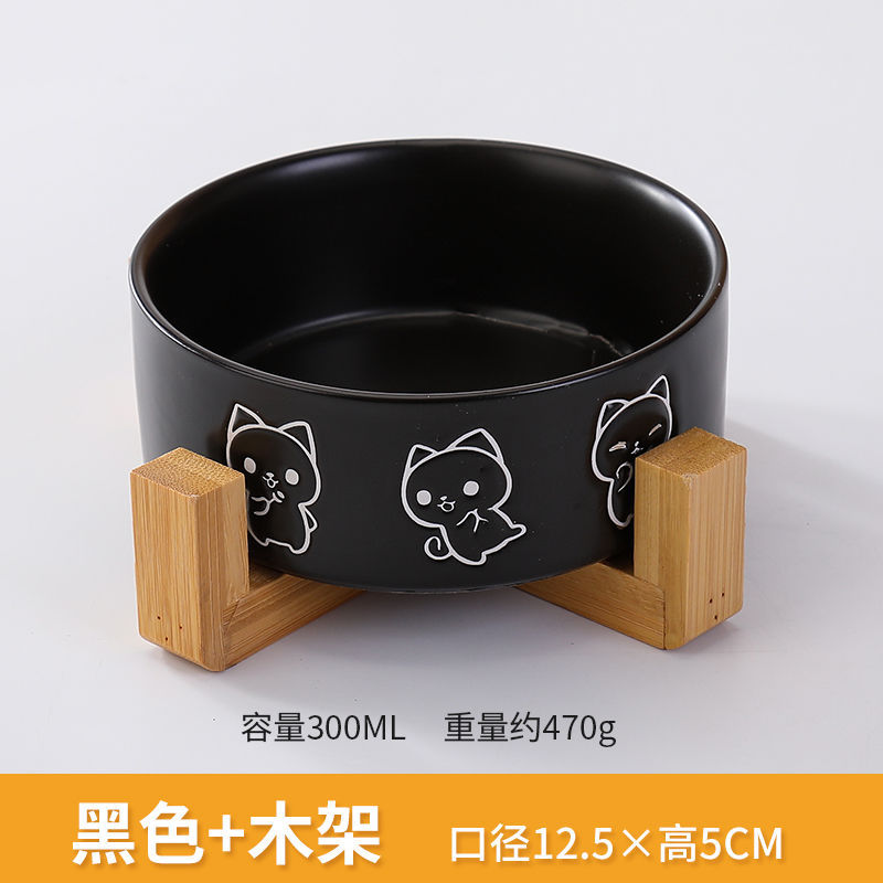 • 신제품: 검은색 새끼 고양이 세 마리 그릇 5inch 나무 스탠드 포함