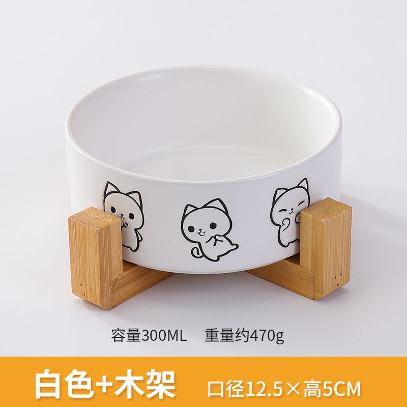 • 신제품: 흰색 새끼 고양이 세 마리 그릇 5inch 나무 스탠드 포함