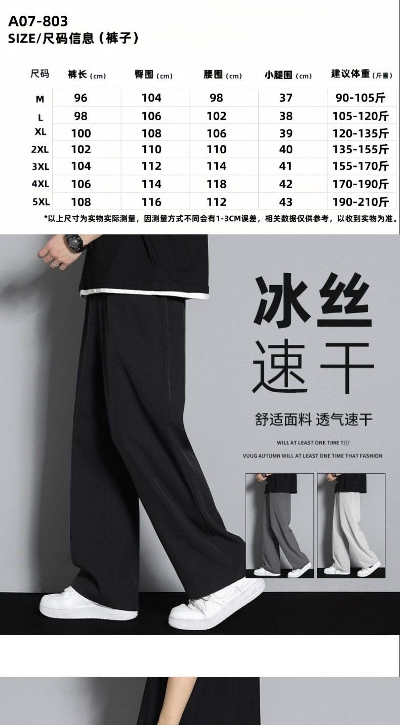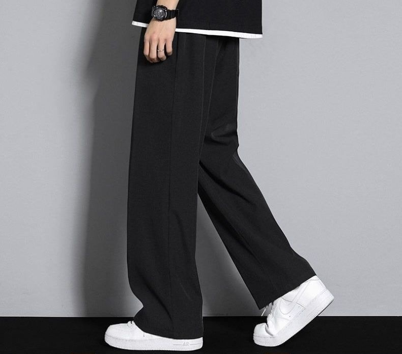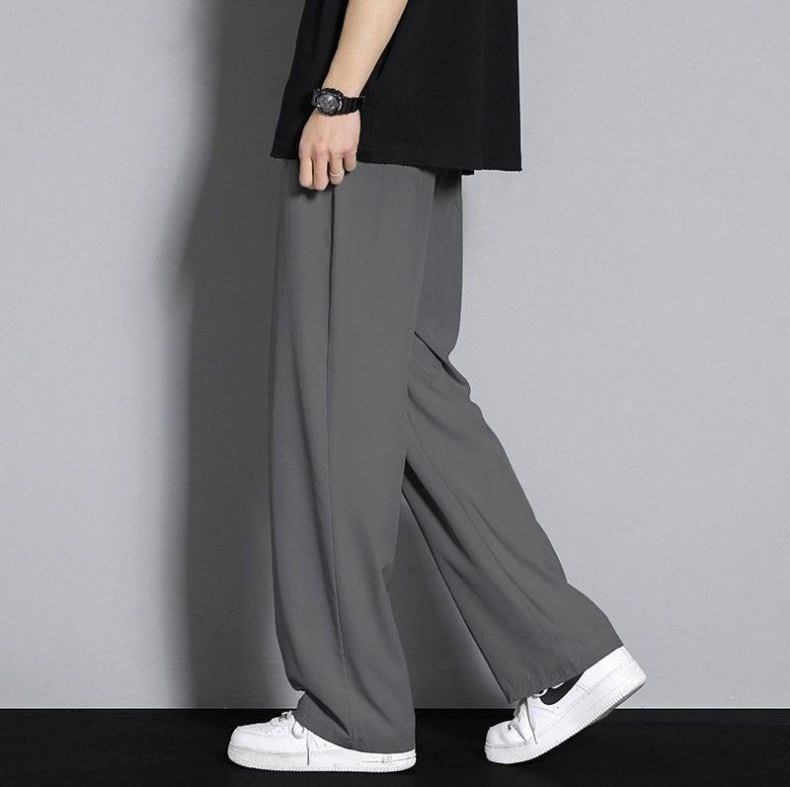 아이스 실크 캐주얼 바지 남성 여름 한국 스타일 트렌디 다용도 와이드 레그 속건 캐주얼 얇은 스포츠 루즈 드레이프 바지