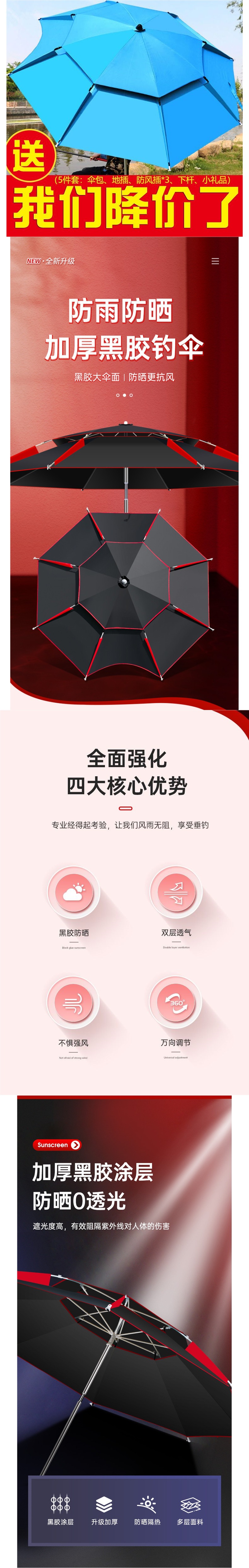 낚시 우산 야외 대형 우산 태양 보호 우산 두꺼운 70% off 스택 휴대용 거리 파자마 파라솔 특별