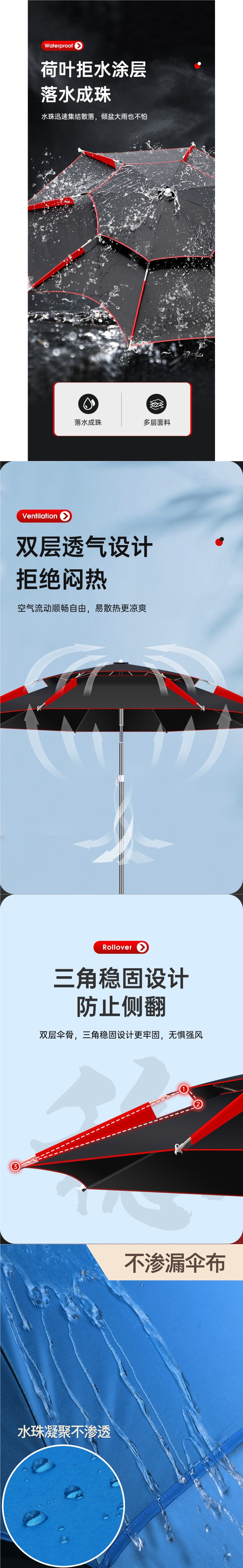 • [인기 판매 모델] 2.3m 대형 검정색 이중층 범용 검정색 플라스틱 우산