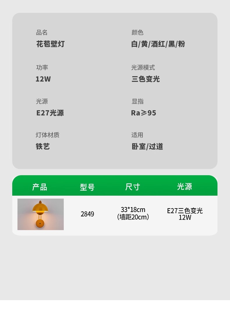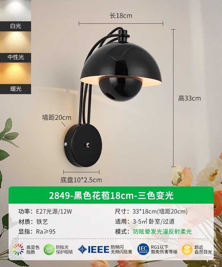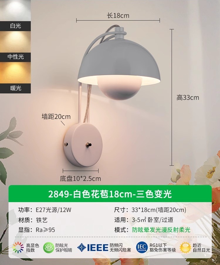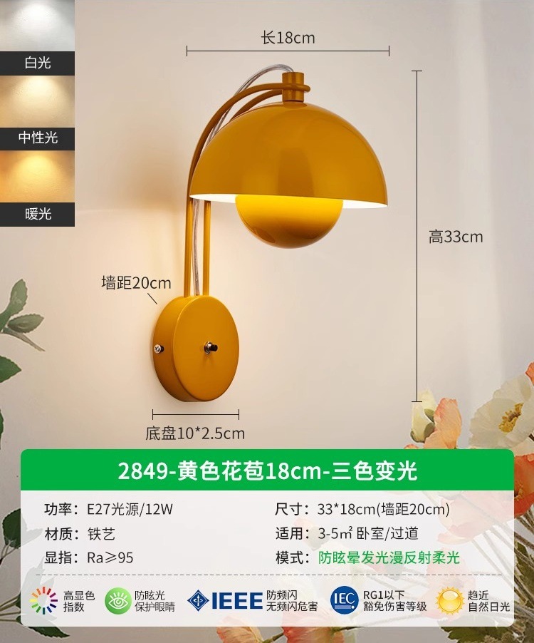 라이트 서클 벽 램프 침실 머리맡 램프 현대 간단한 덴마크어 꽃 봉오리 분위기 통로 거실 배경 벽 램프 1