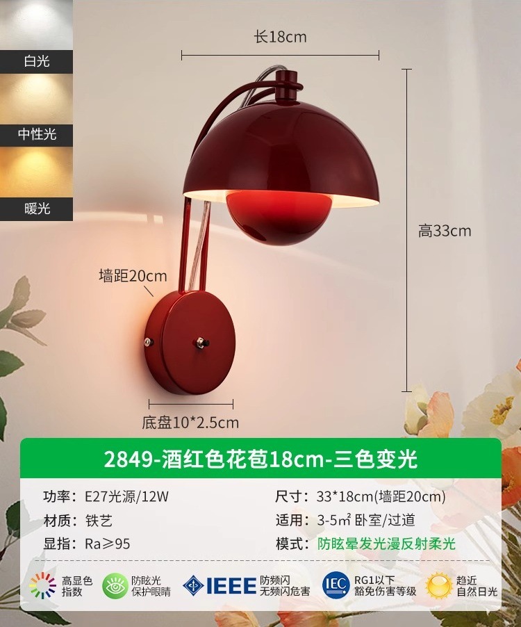 • [풀 스펙트럼 눈 보호] 버건디 버드 18cm-3색 디밍 12W