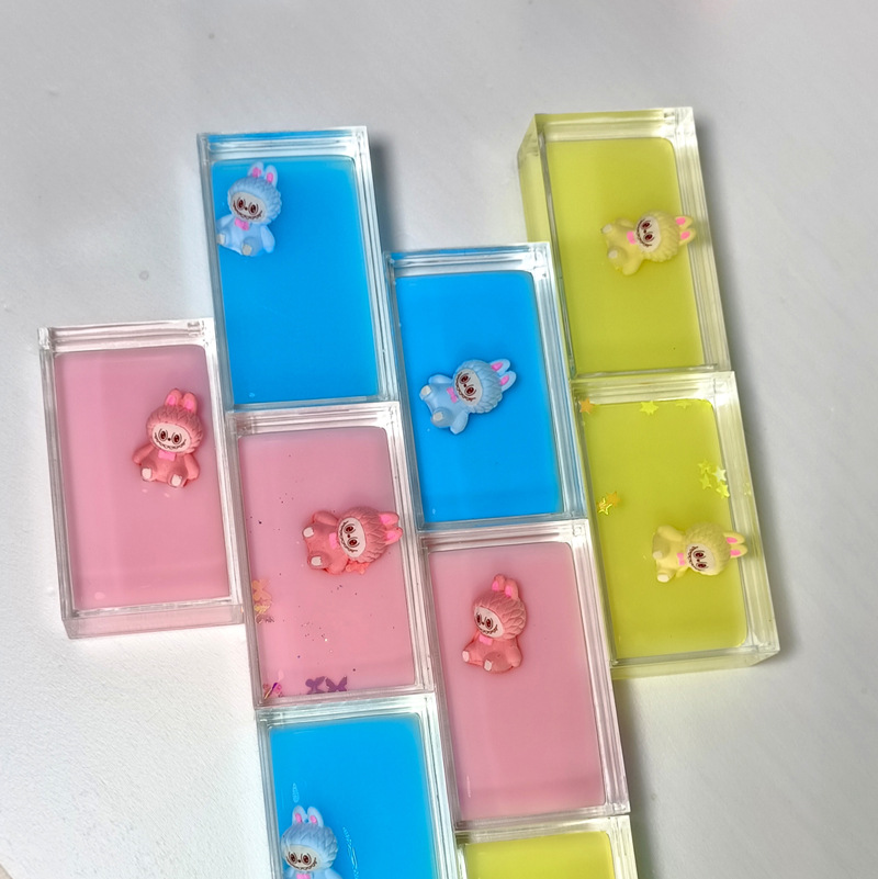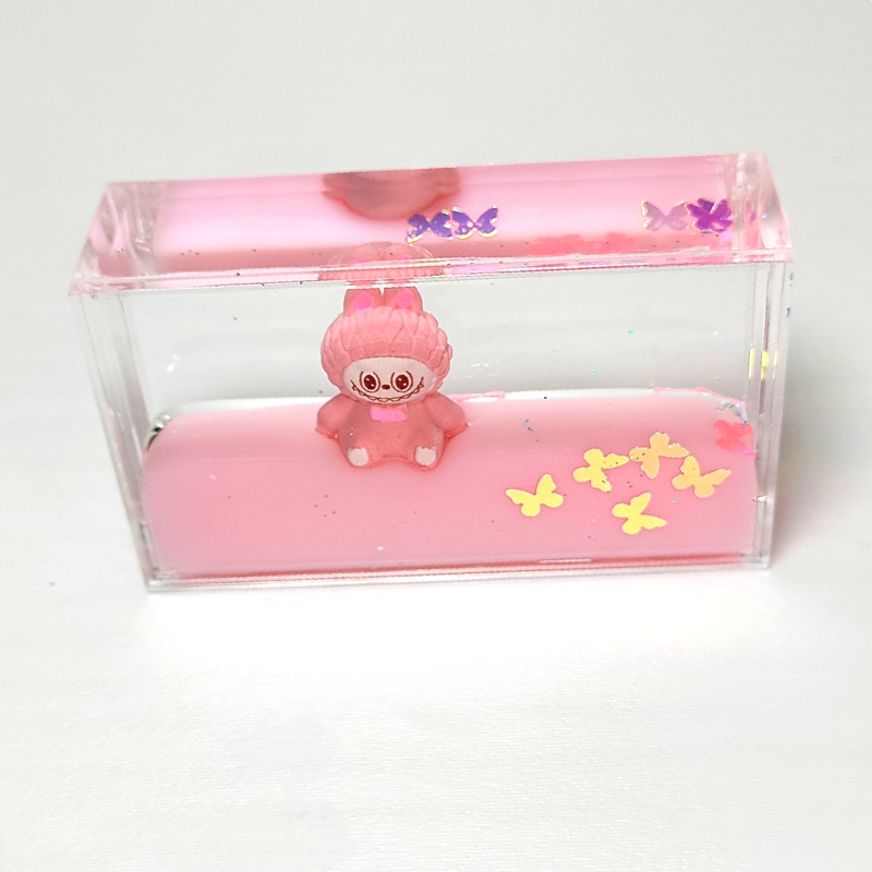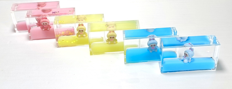 Labubu 장식품 액체 유사 오일 장난감 크리스탈 벽돌 보석 소녀 생일 선물 선물 아크릴 투명