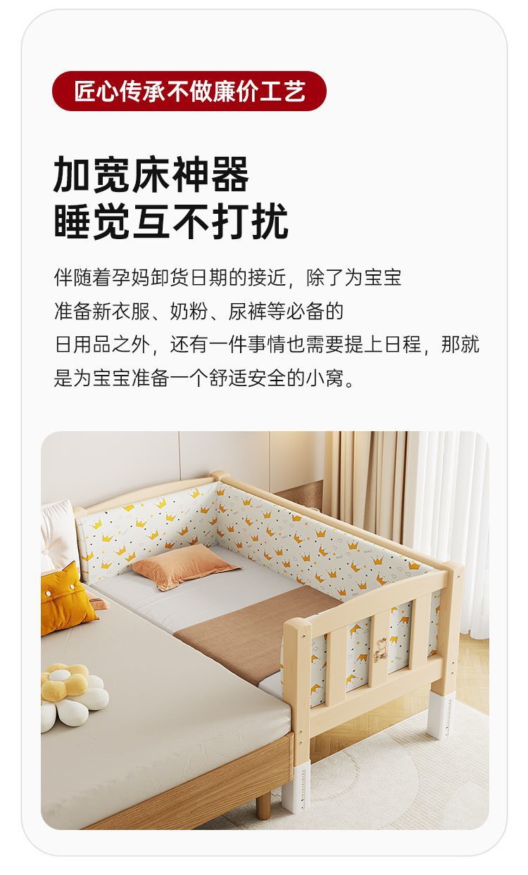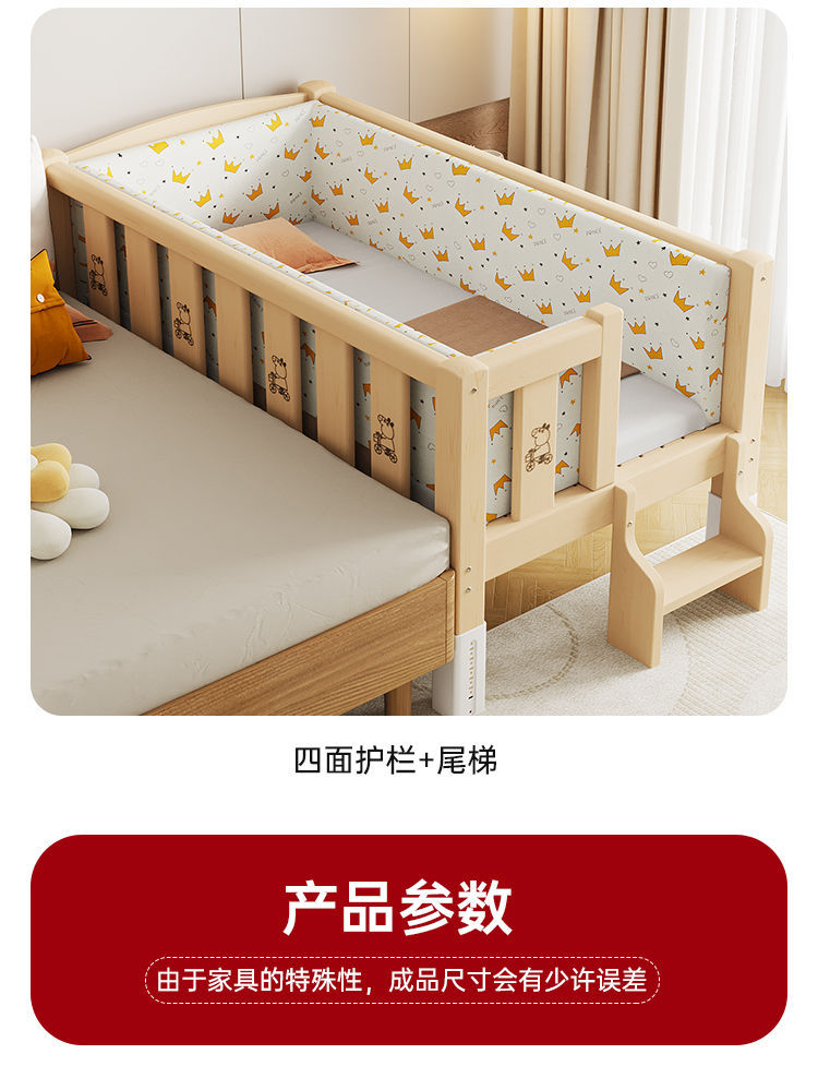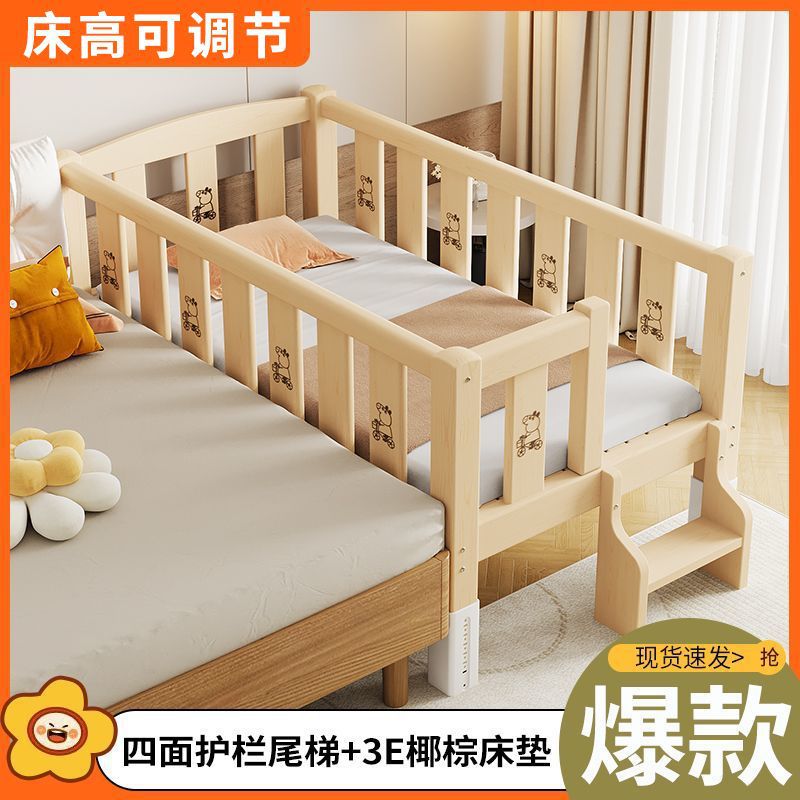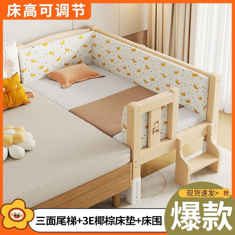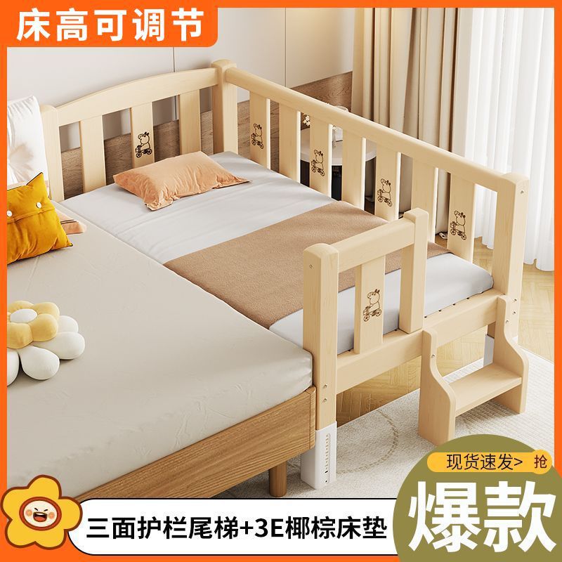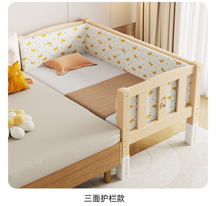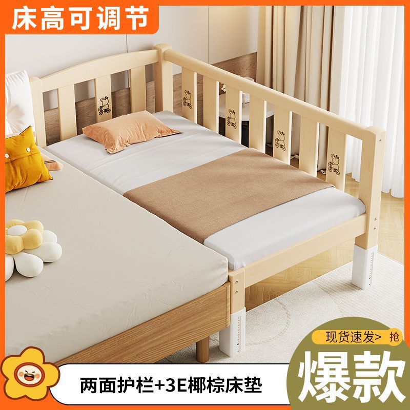 Mlo 단단한 나무 접합 침대, 넓은 침대 옆, 남성과 여성의 아기 침대, 가드 레일이있는 어린이 침대, 조절 가능한 유아용 침대