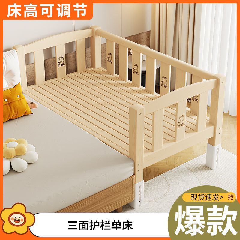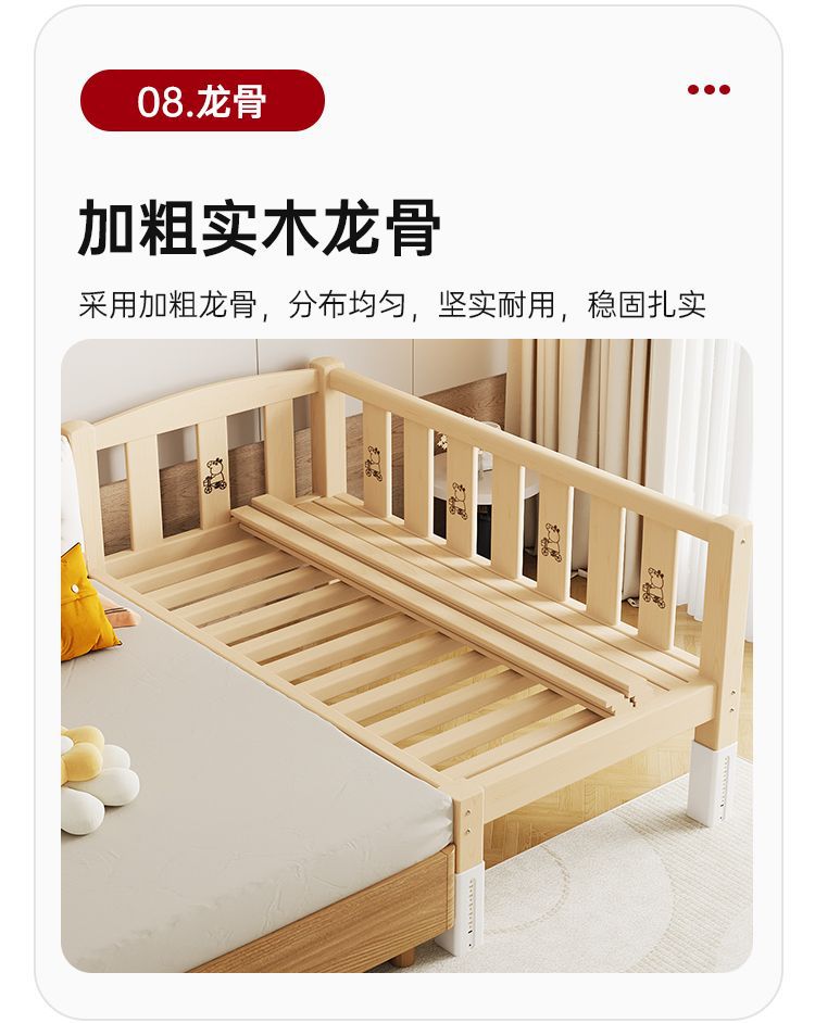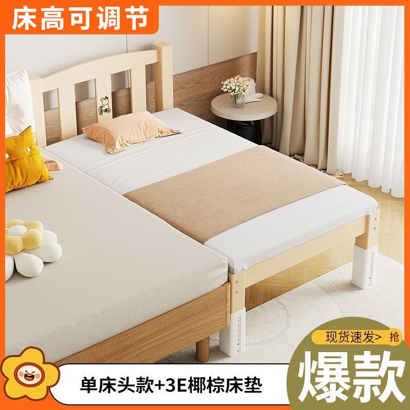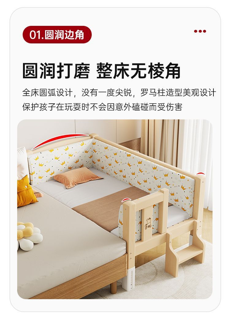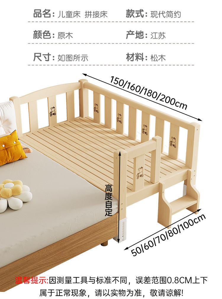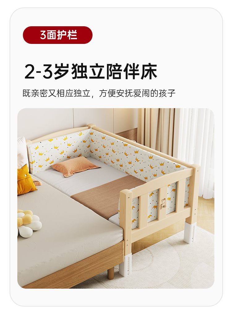 Mlo 단단한 나무 접합 침대, 넓은 침대 옆, 남성과 여성의 아기 침대, 가드 레일이있는 어린이 침대, 조절 가능한 유아용 침대
