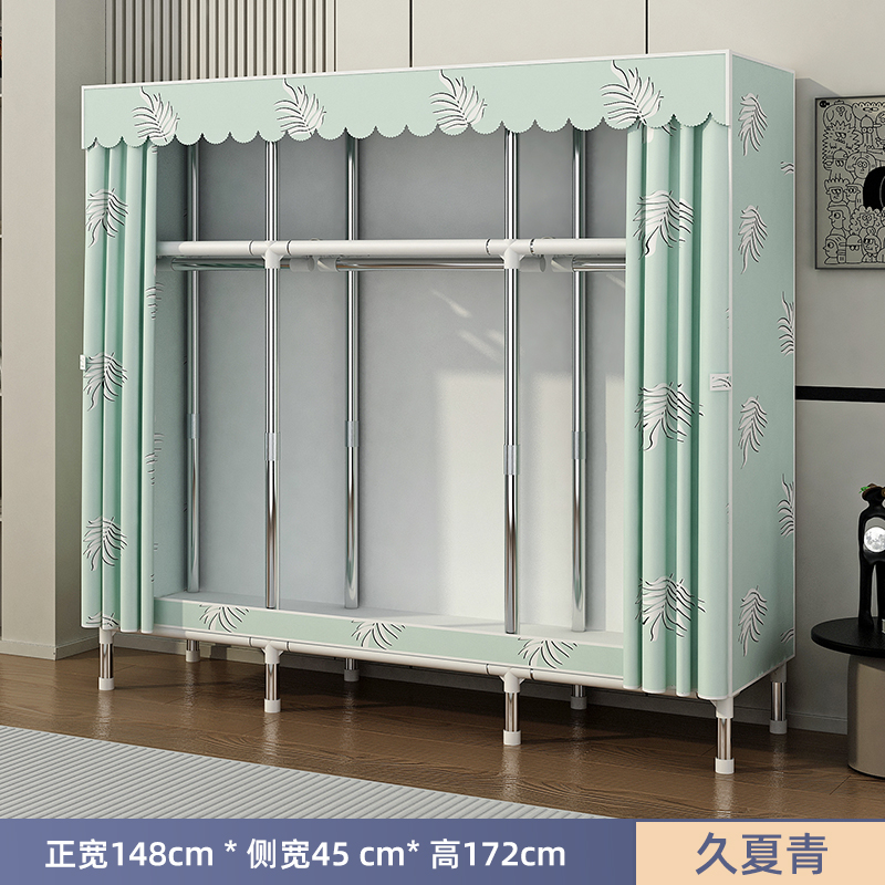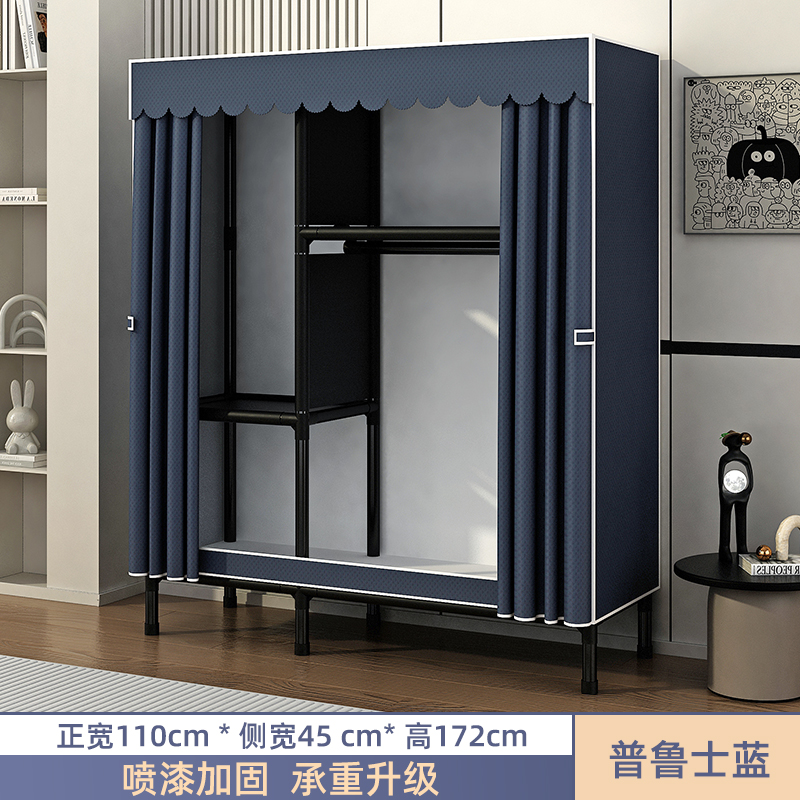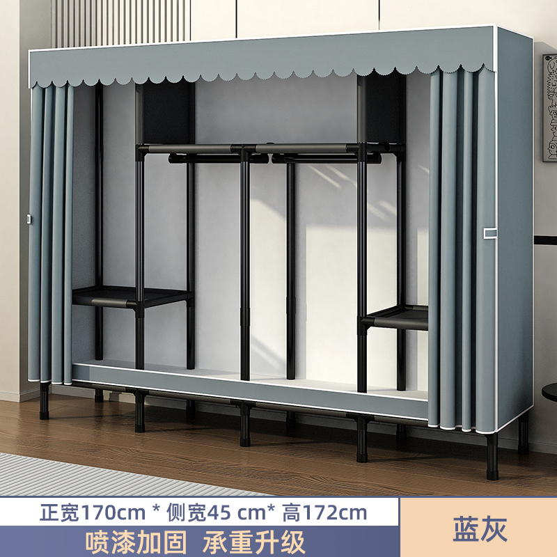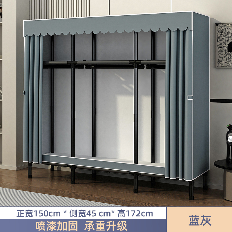 ♔ 옷장 가정용 침실 간편 조립 천 옷장 강철 파이프 두꺼워진 내구성 강화 옷장