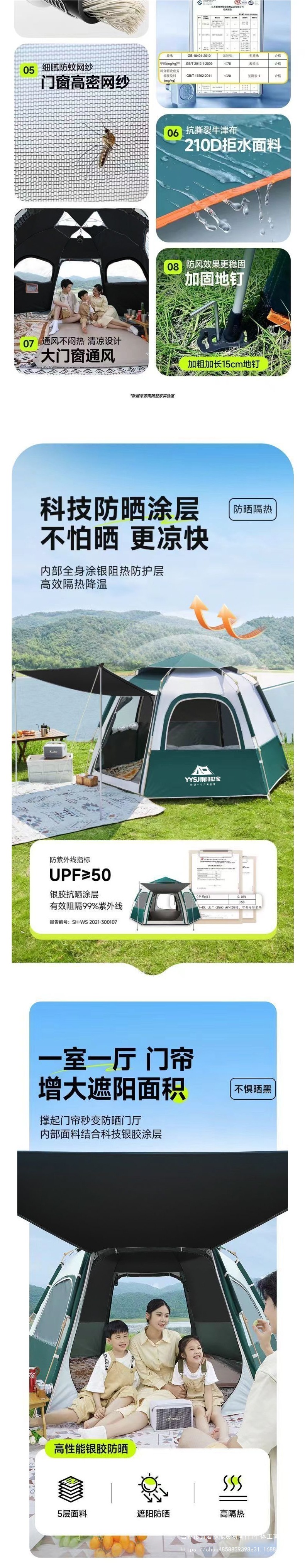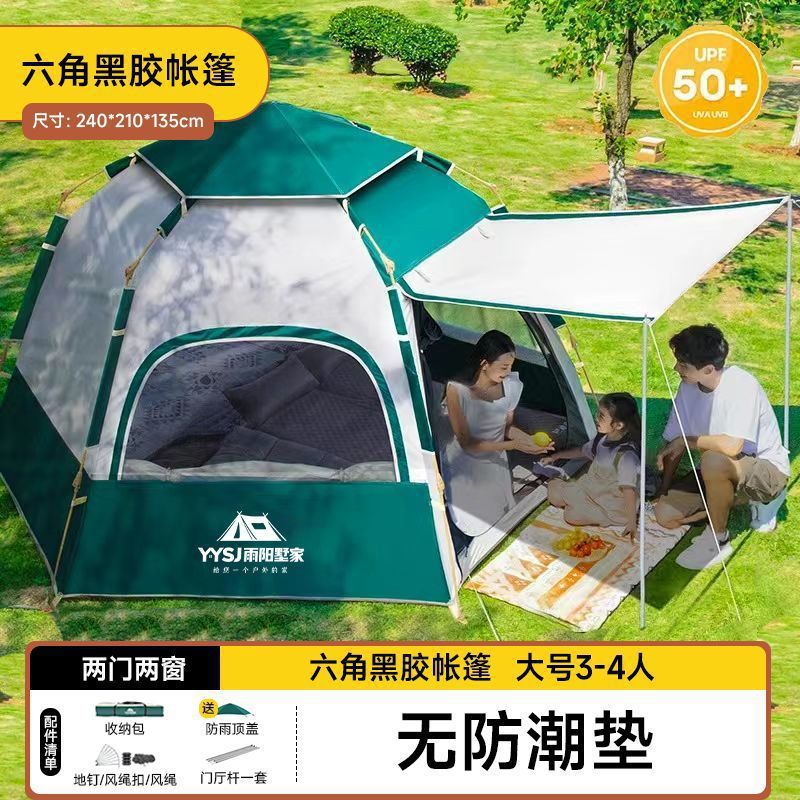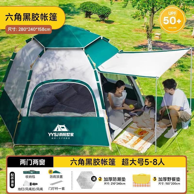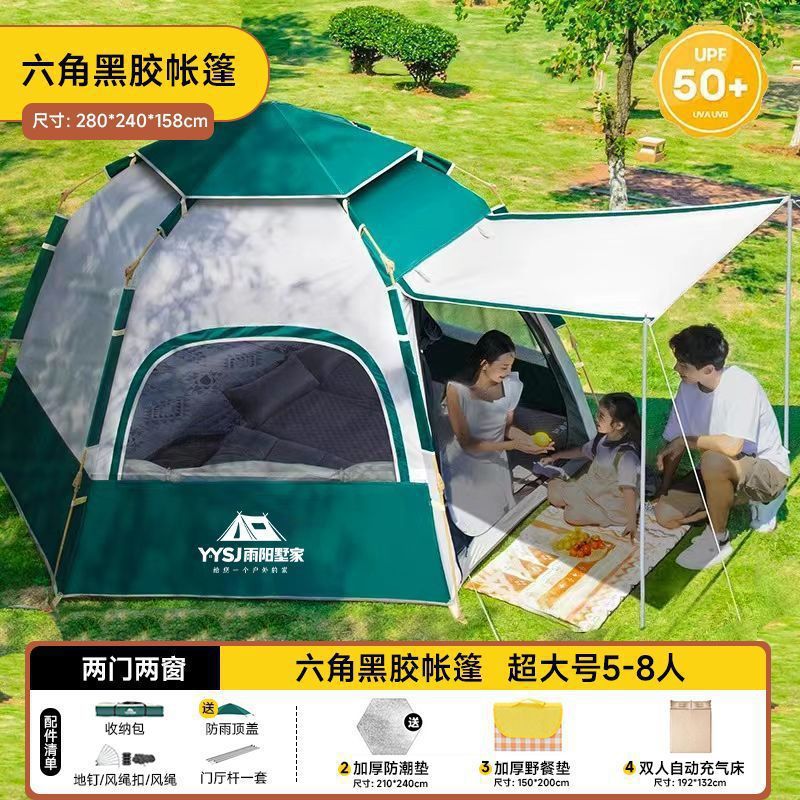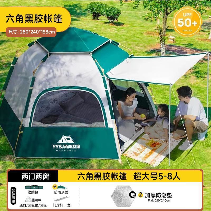Yuyangshujia 텐트 야외 캠핑 방수 및 자외선 차단제 두꺼운 비닐 육각형 캐노피 텐트 가족용스토어 가기