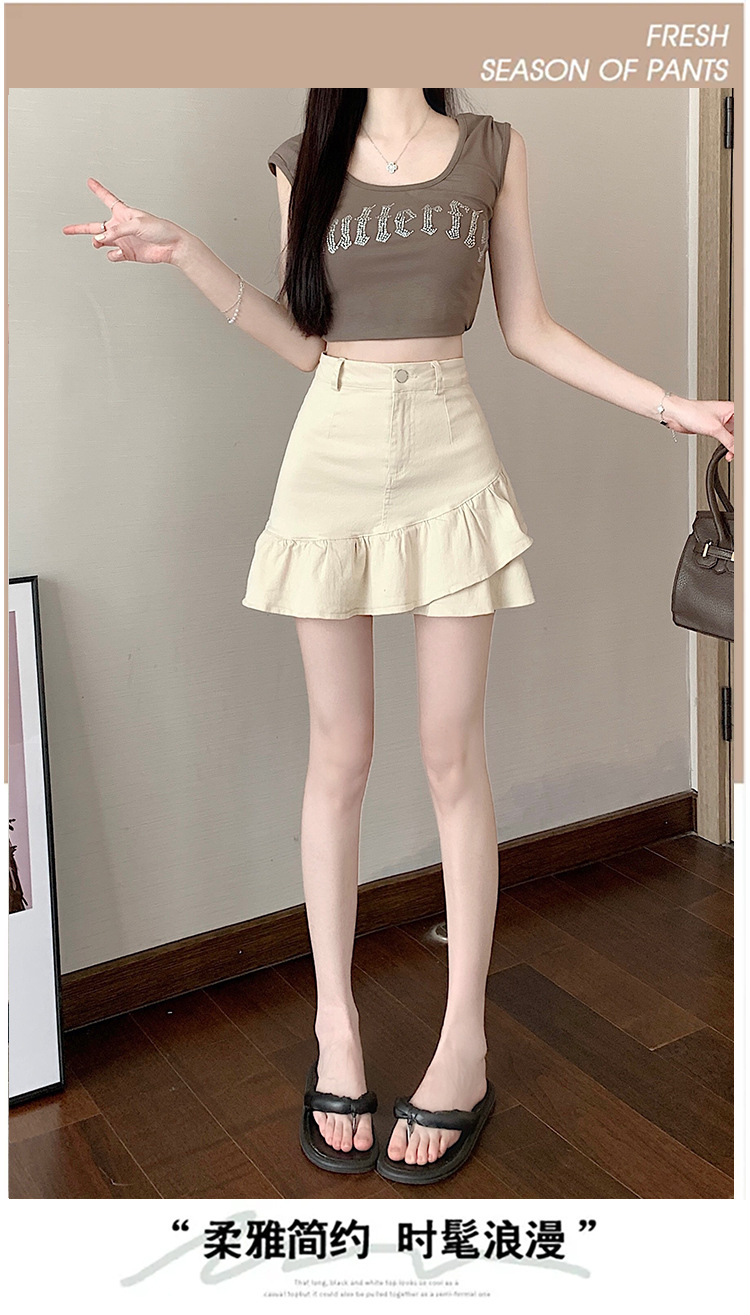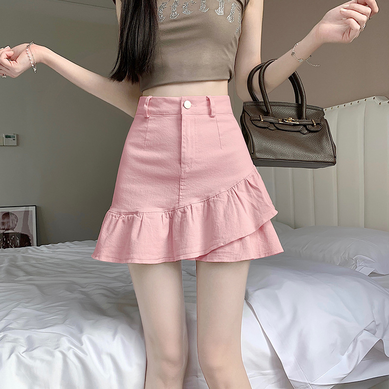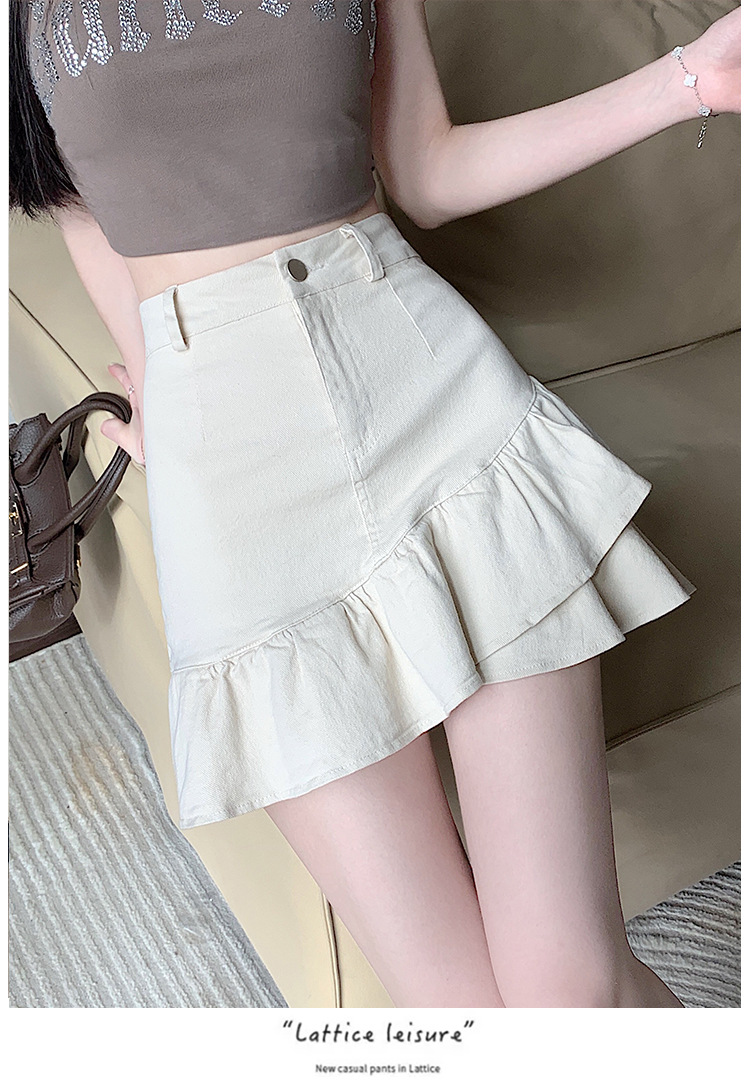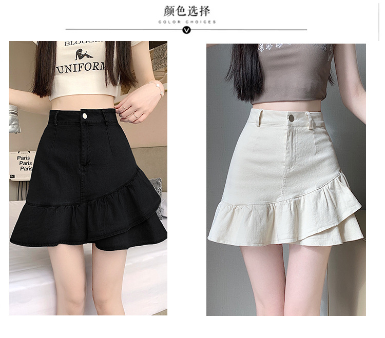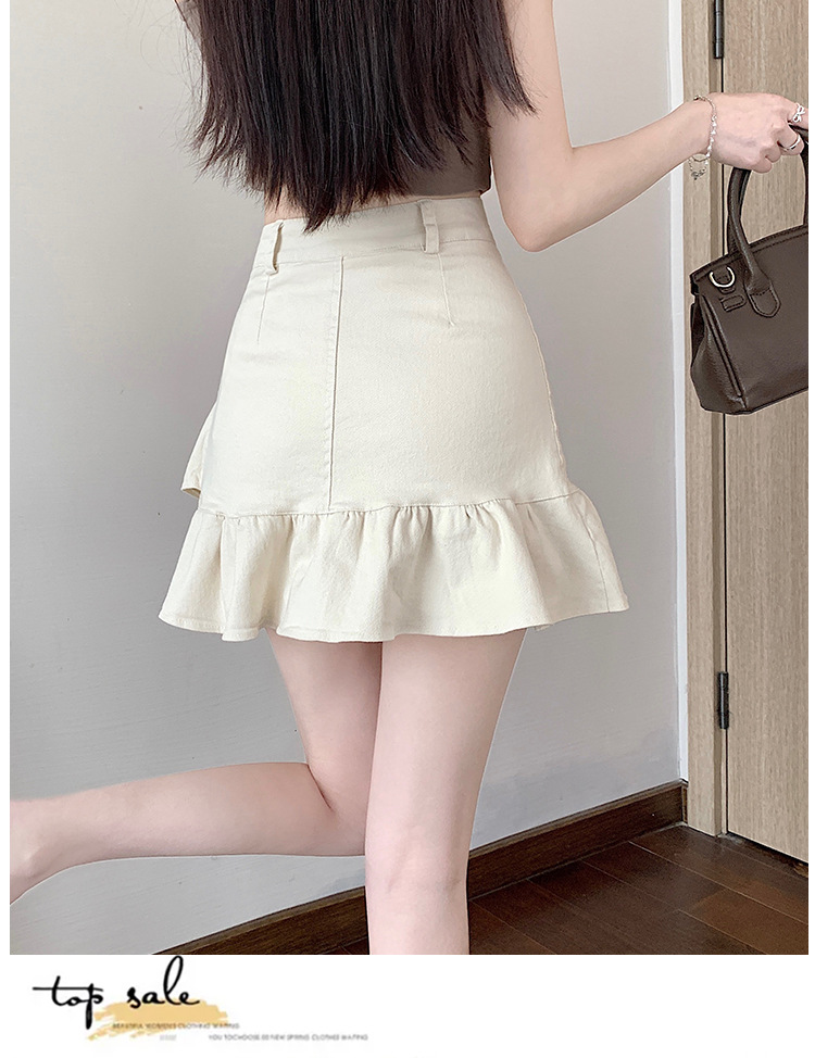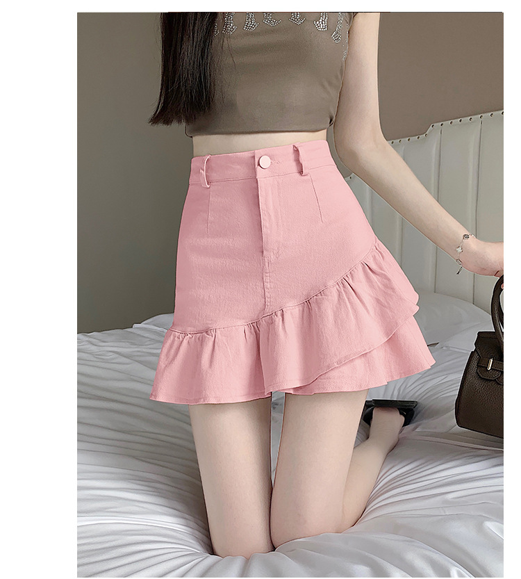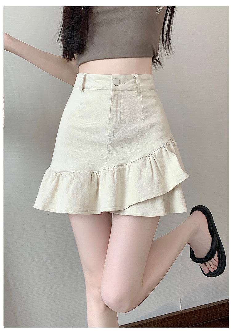 슬림하고 신축성이 뛰어난 슬리밍 코튼 워싱 A라인 피쉬테일 스커트 여성용 초단거리 노출 방지 반바지 스커트