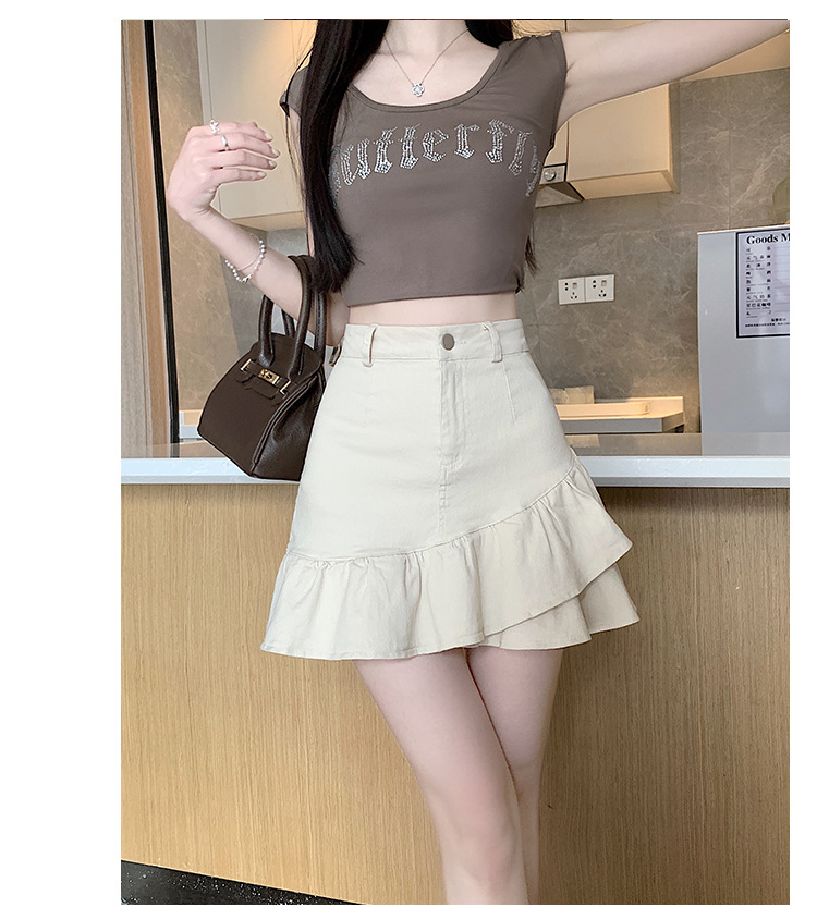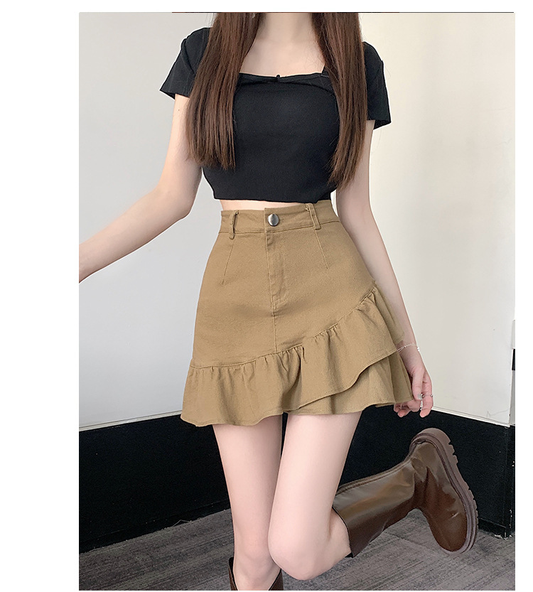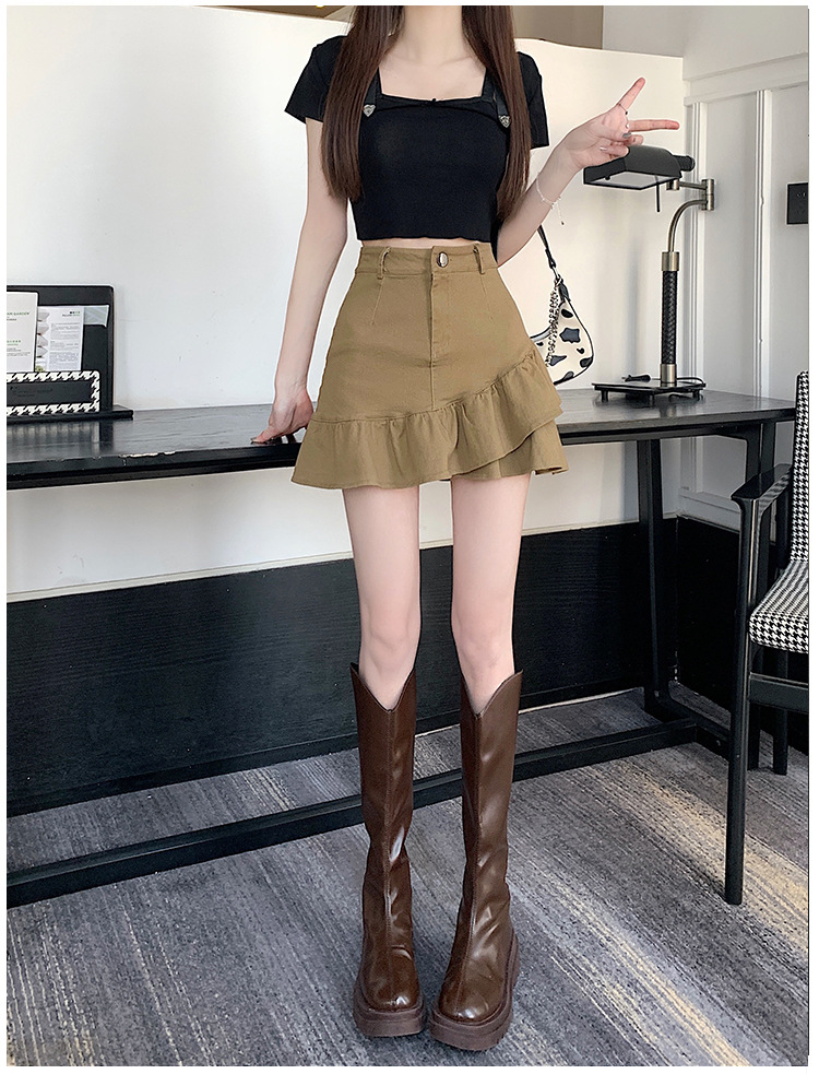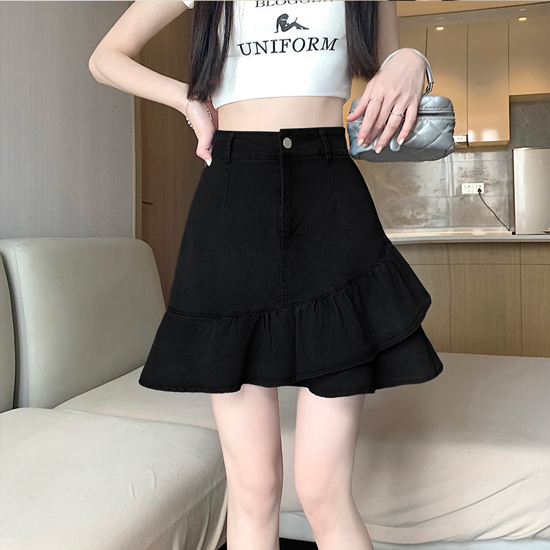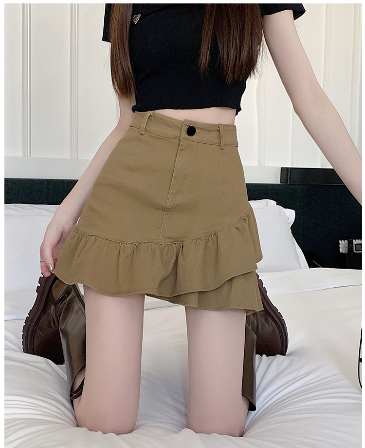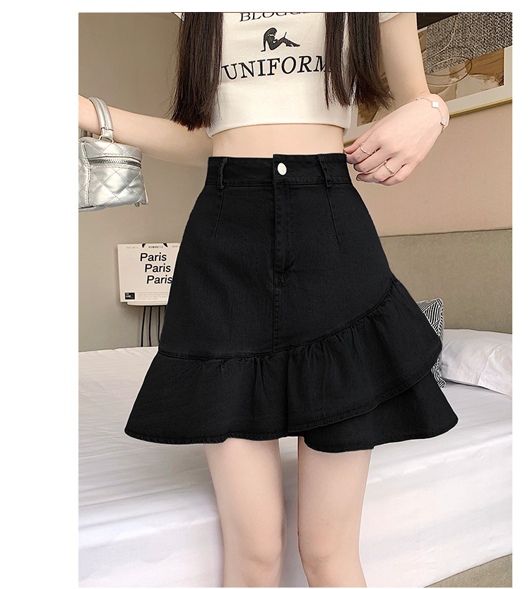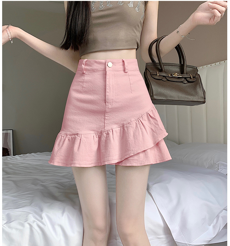 슬림하고 신축성이 뛰어난 슬리밍 코튼 워싱 A라인 피쉬테일 스커트 여성용 초단거리 노출 방지 반바지 스커트