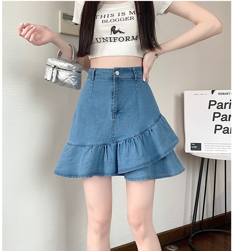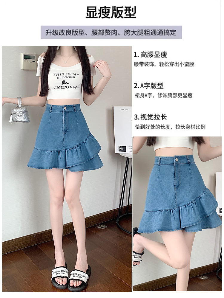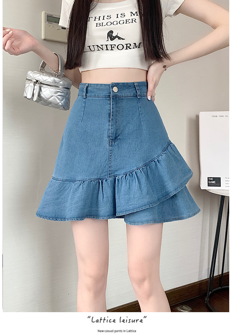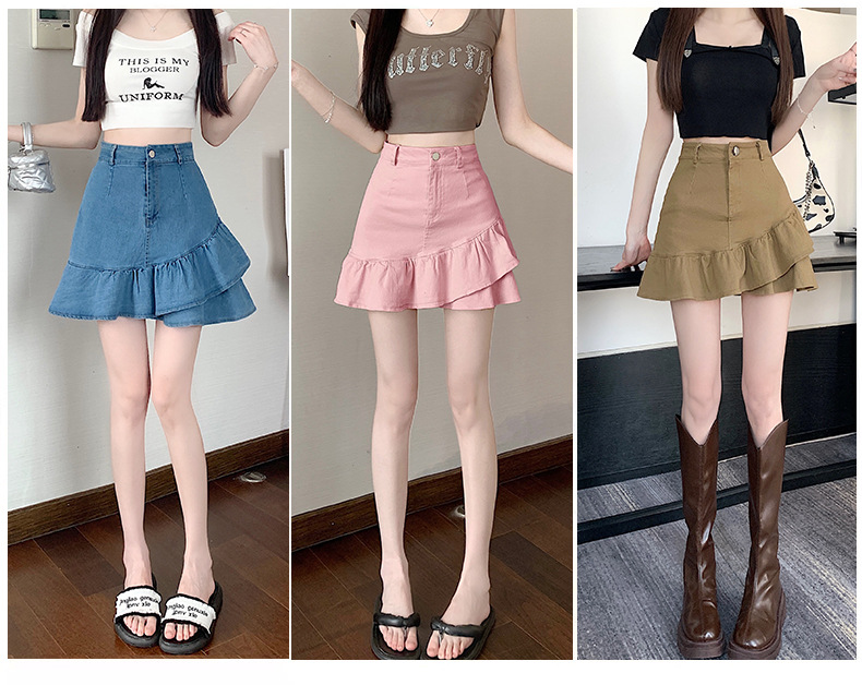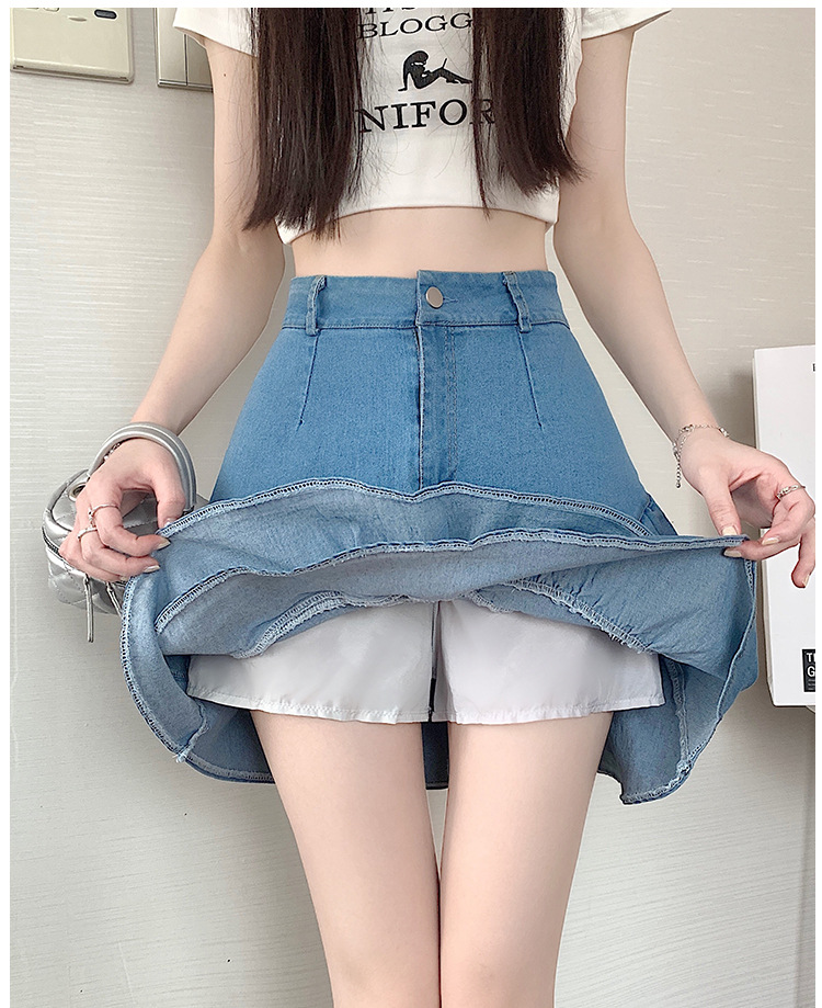 슬림하고 신축성이 뛰어난 슬리밍 코튼 워싱 A라인 피쉬테일 스커트 여성용 초단거리 노출 방지 반바지 스커트스토어 가기