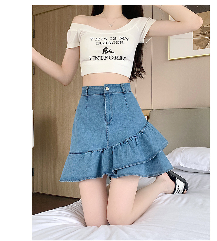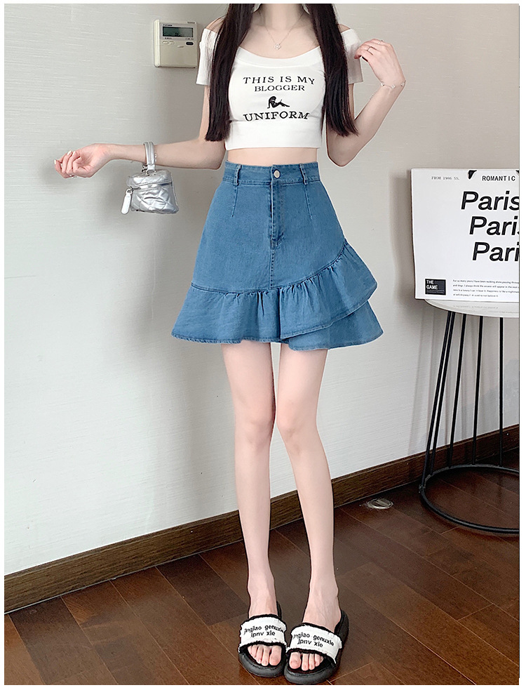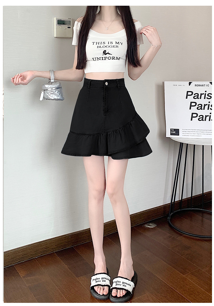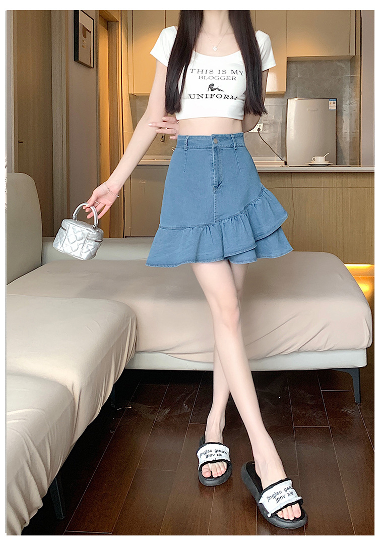 슬림하고 신축성이 뛰어난 슬리밍 코튼 워싱 A라인 피쉬테일 스커트 여성용 초단거리 노출 방지 반바지 스커트스토어 가기
