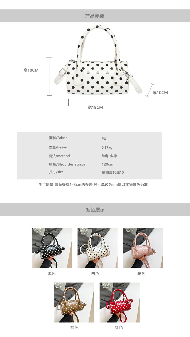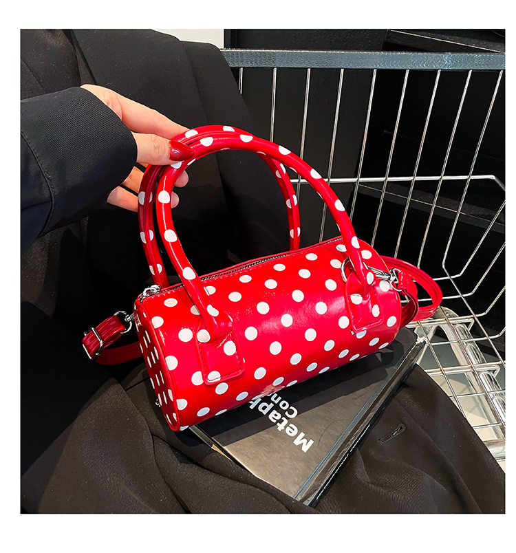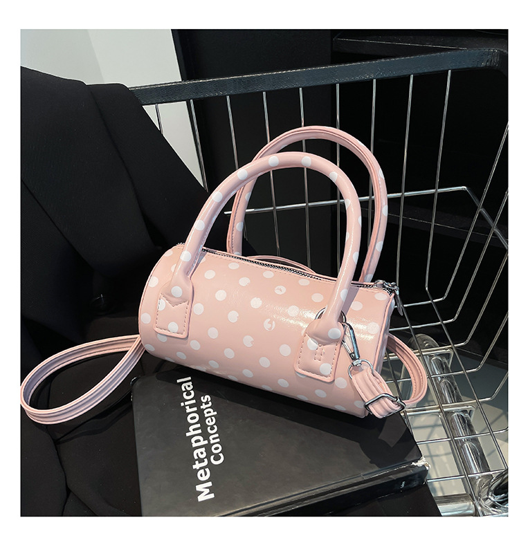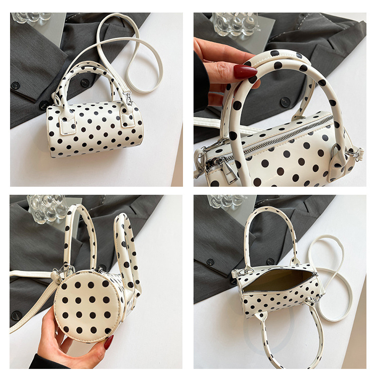 여성을위한 국경 간 틈새 디자인 가방 2025 새로운 여름 어깨 크로스 바디 백 한국어 버전 폴카 도트 휴대용 원통형 가방
