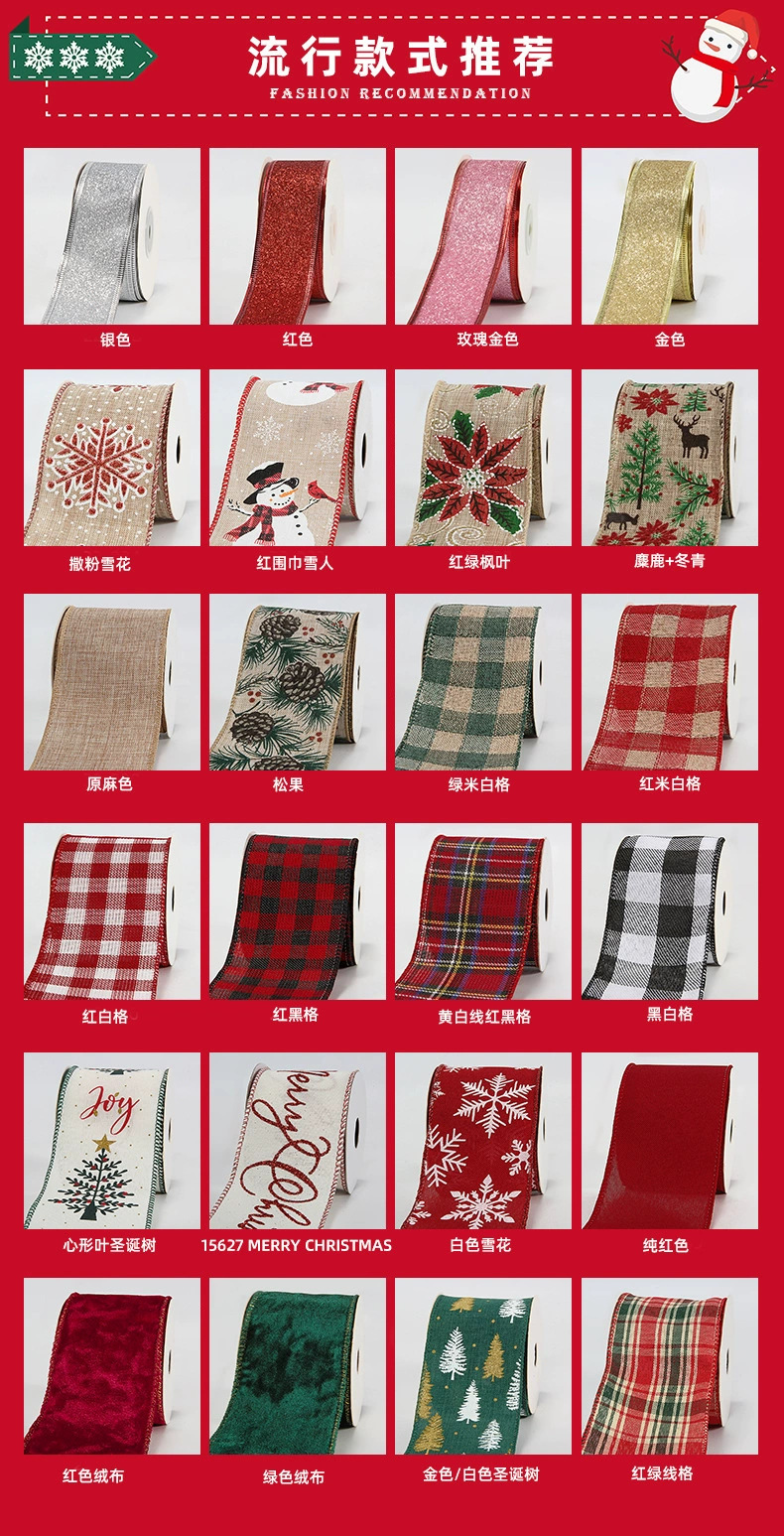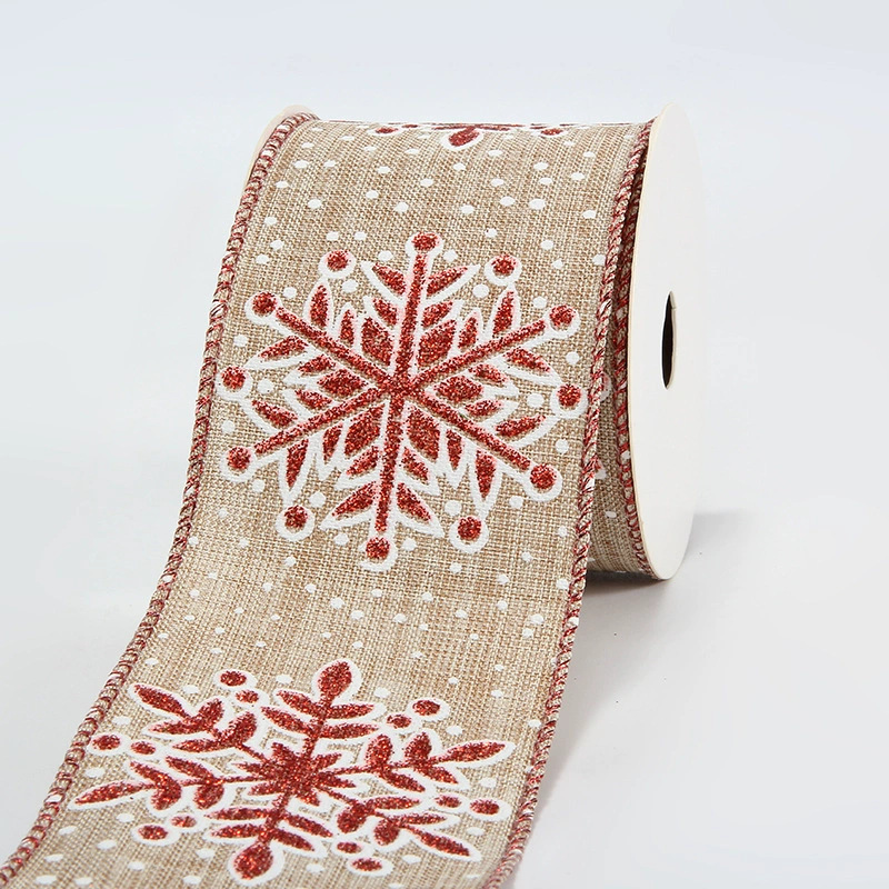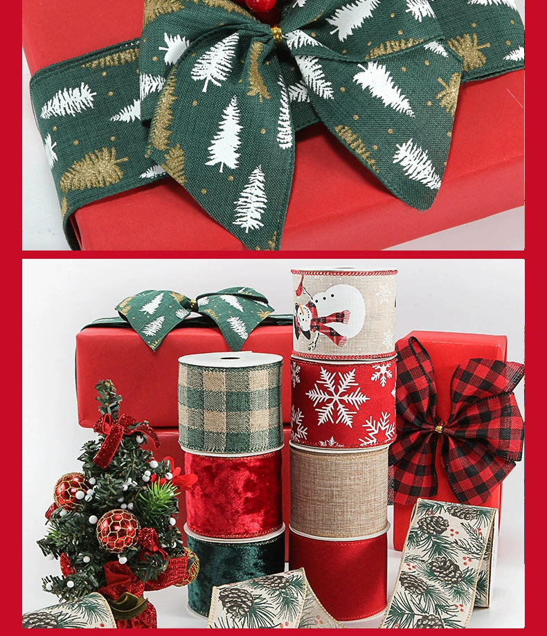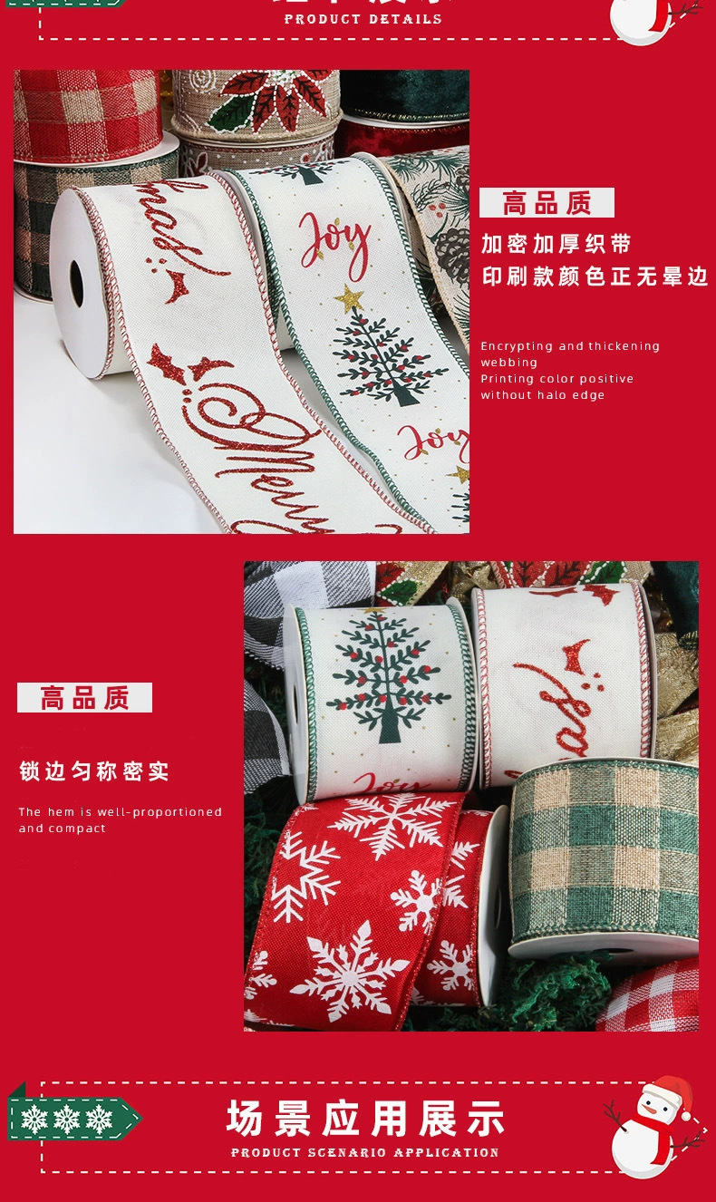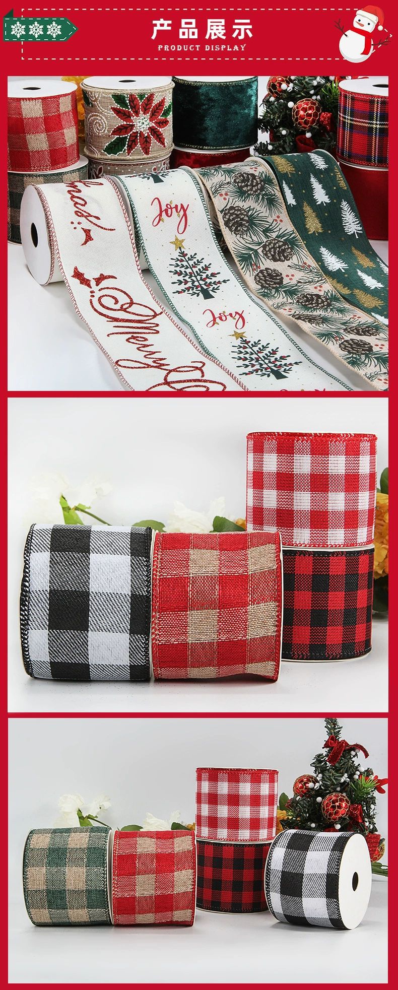 크리스마스 장식용 금박 프린트 리본, 크리스마스 트리 화환, 모조 린넨 리본, 리본 매듭, 도매 직조 리본스토어 가기
