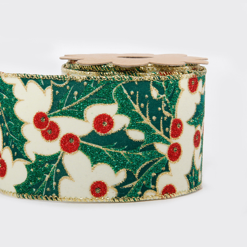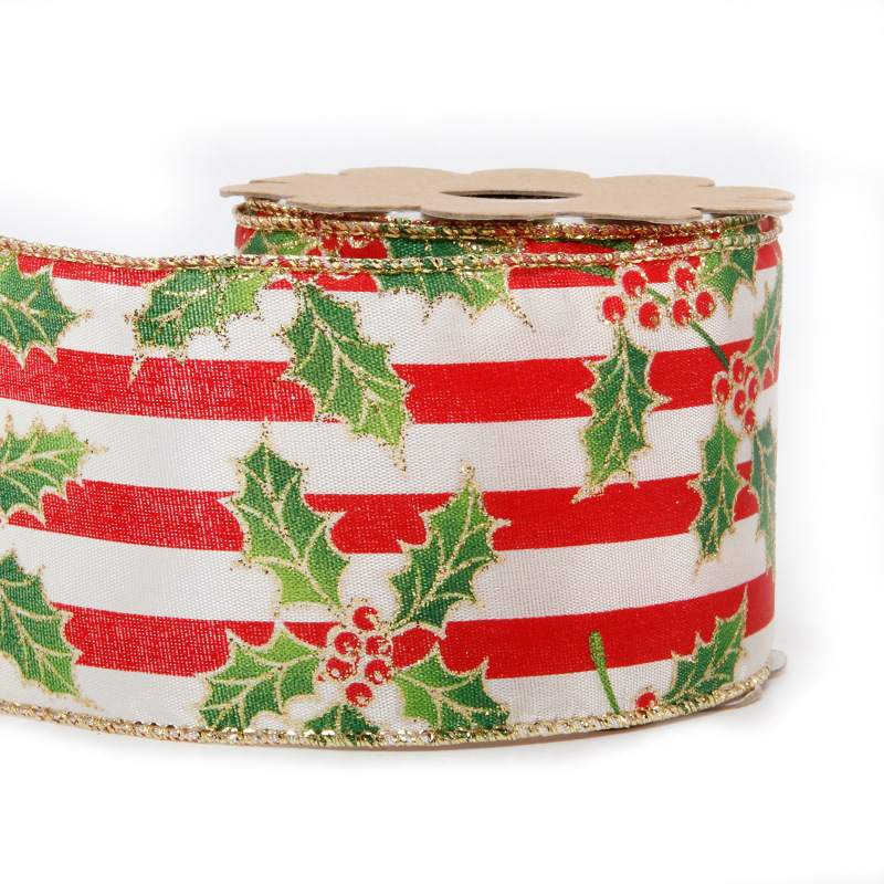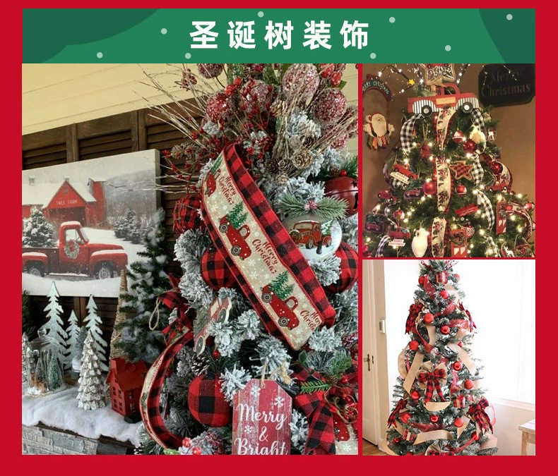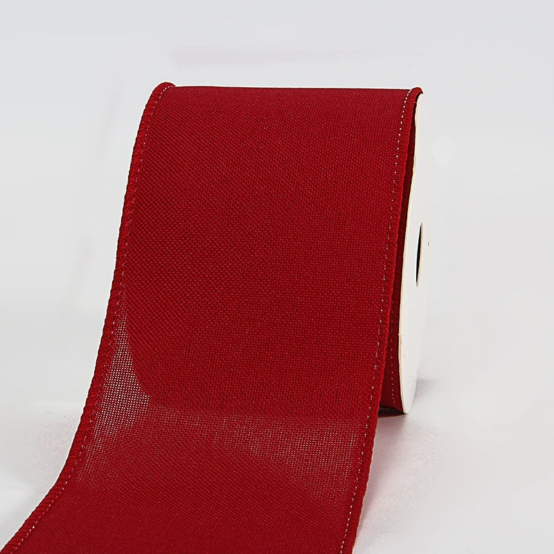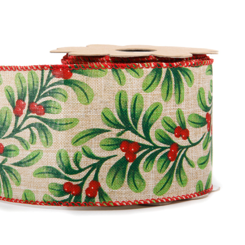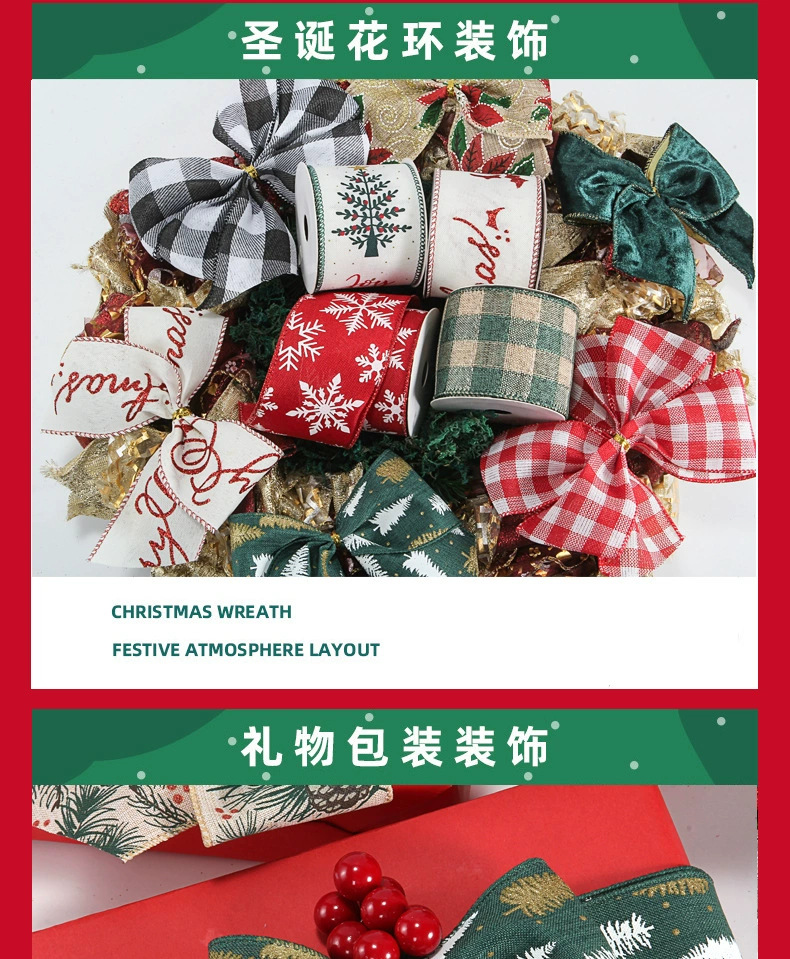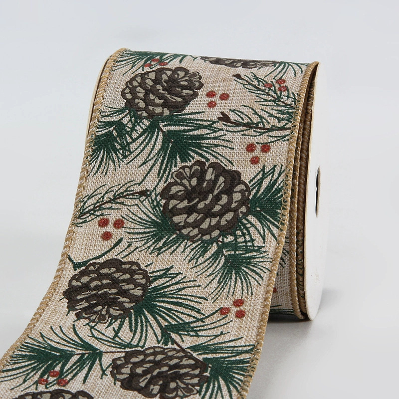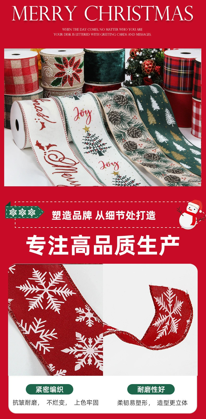 크리스마스 장식용 금박 프린트 리본, 크리스마스 트리 화환, 모조 린넨 리본, 리본 매듭, 도매 직조 리본스토어 가기
