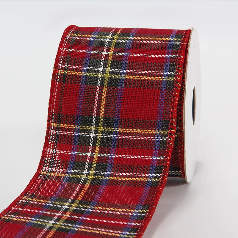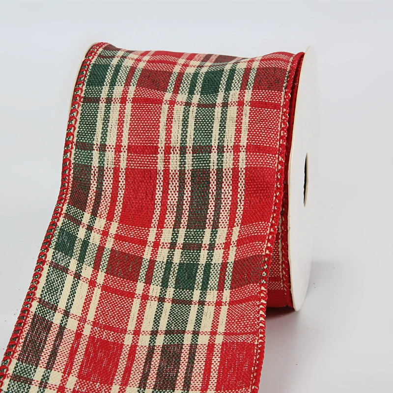 • 폴리에스테르 격자 무늬 테이프 - 빨간색 및 녹색 실 격자 - 63mm(10야드/롤)