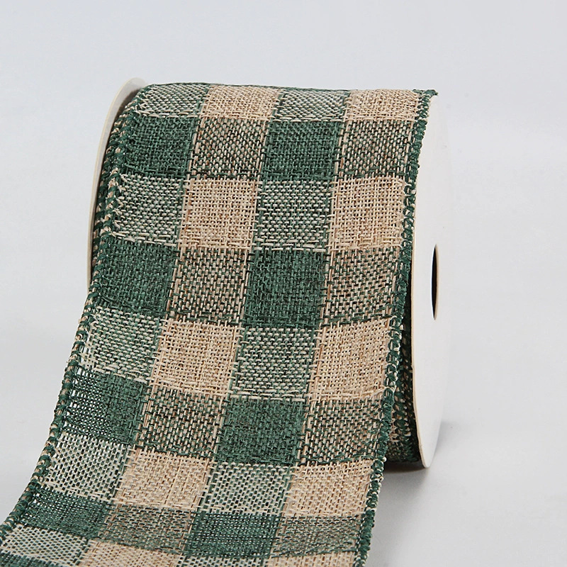 • 폴리에스테르 격자무늬 테이프-녹색 베이지색과 흰색 격자무늬-63mm(10야드/롤)