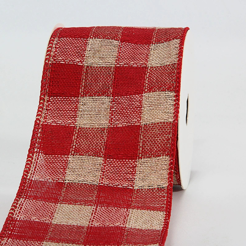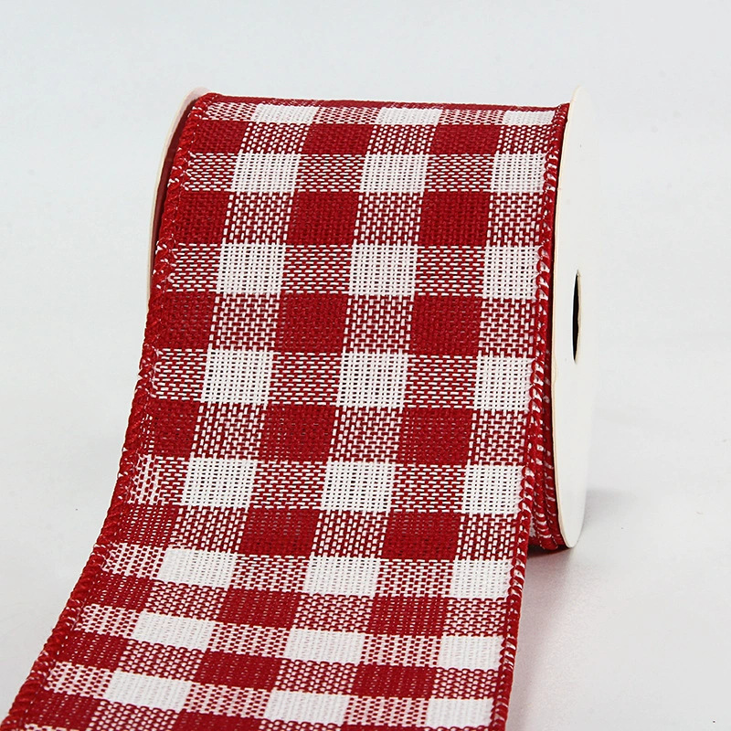 • 폴리에스테르 격자 무늬 테이프-빨간색 쌀 흰색 격자-63mm(10야드/롤)