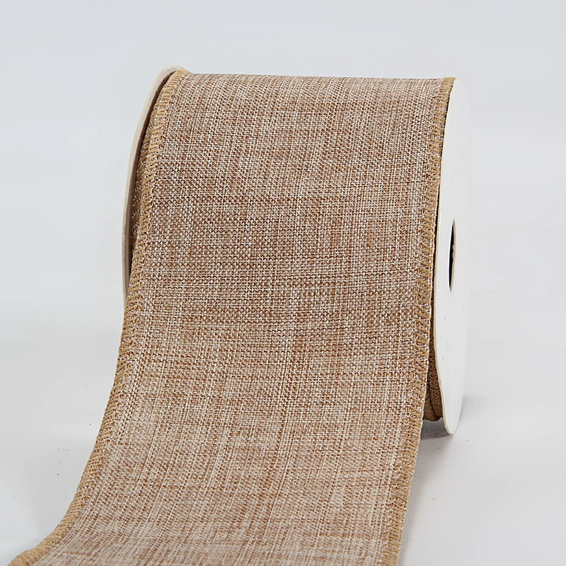 크리스마스 장식용 금박 프린트 리본, 크리스마스 트리 화환, 모조 린넨 리본, 리본 매듭, 도매 직조 리본
