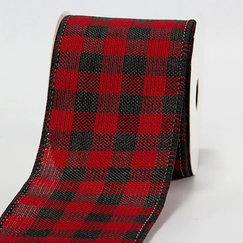• 폴리에스테르 격자 무늬 테이프-빨간색 및 검정색 격자 무늬-63mm(10야드/롤)