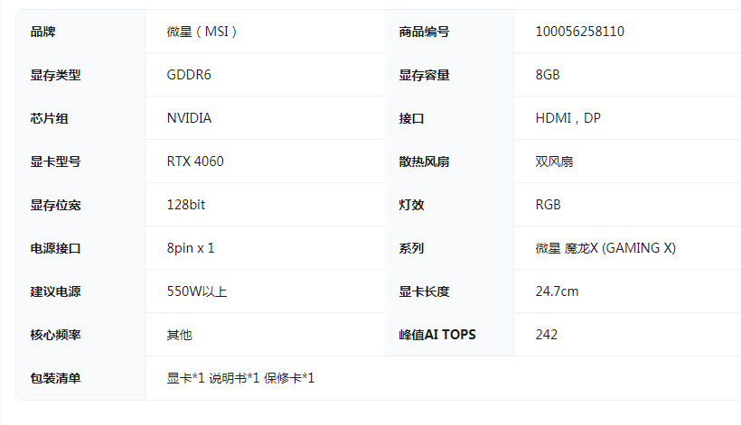 Magic Dragon GeForce RTX 4060 GAMING X 8G e-스포츠 게임 디자인 지능형 학습 AI 그래픽 카드스토어 가기