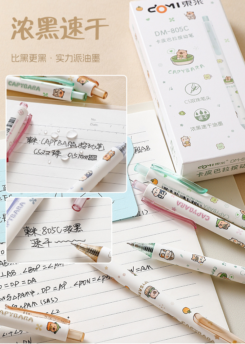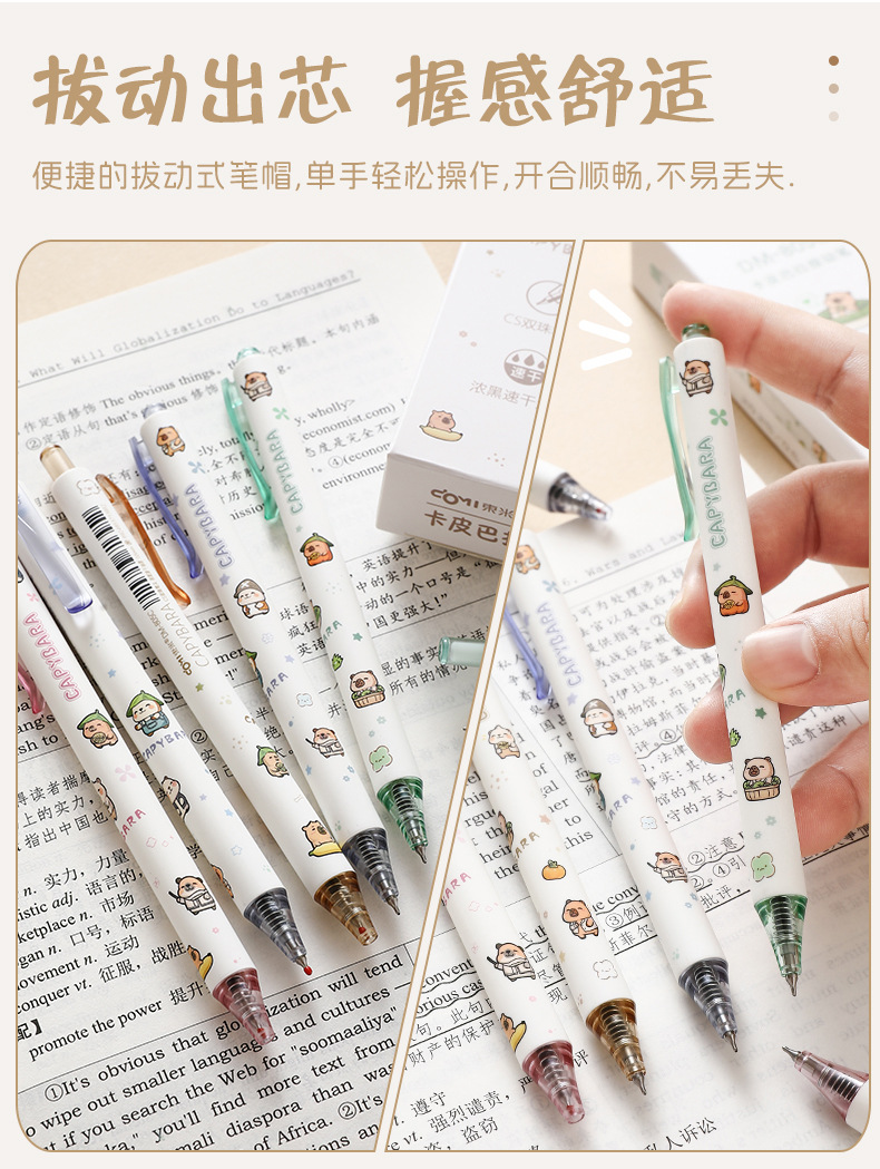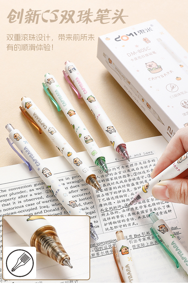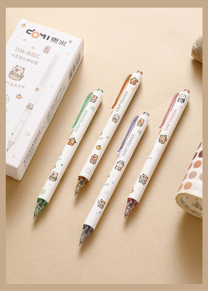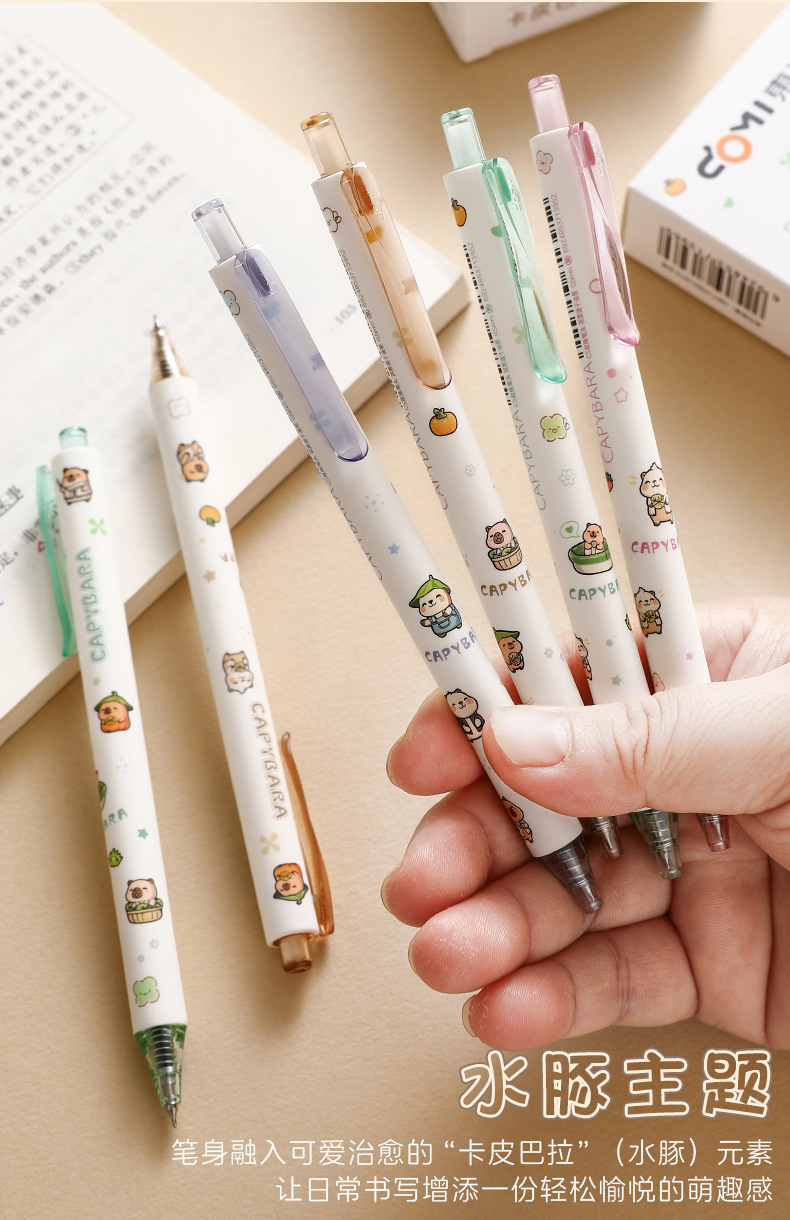 Dongmi 805C Kapibala 프레스 젤 펜 귀여운 만화 초등학생 속건성 브러쉬 펜 검정색 펜 0.5CS