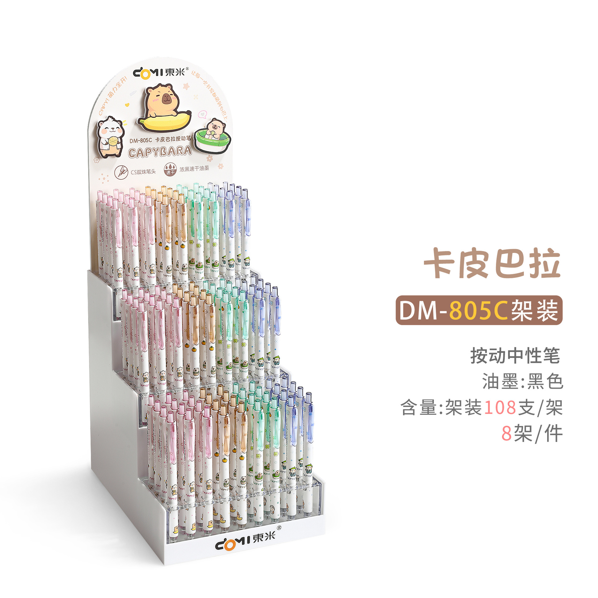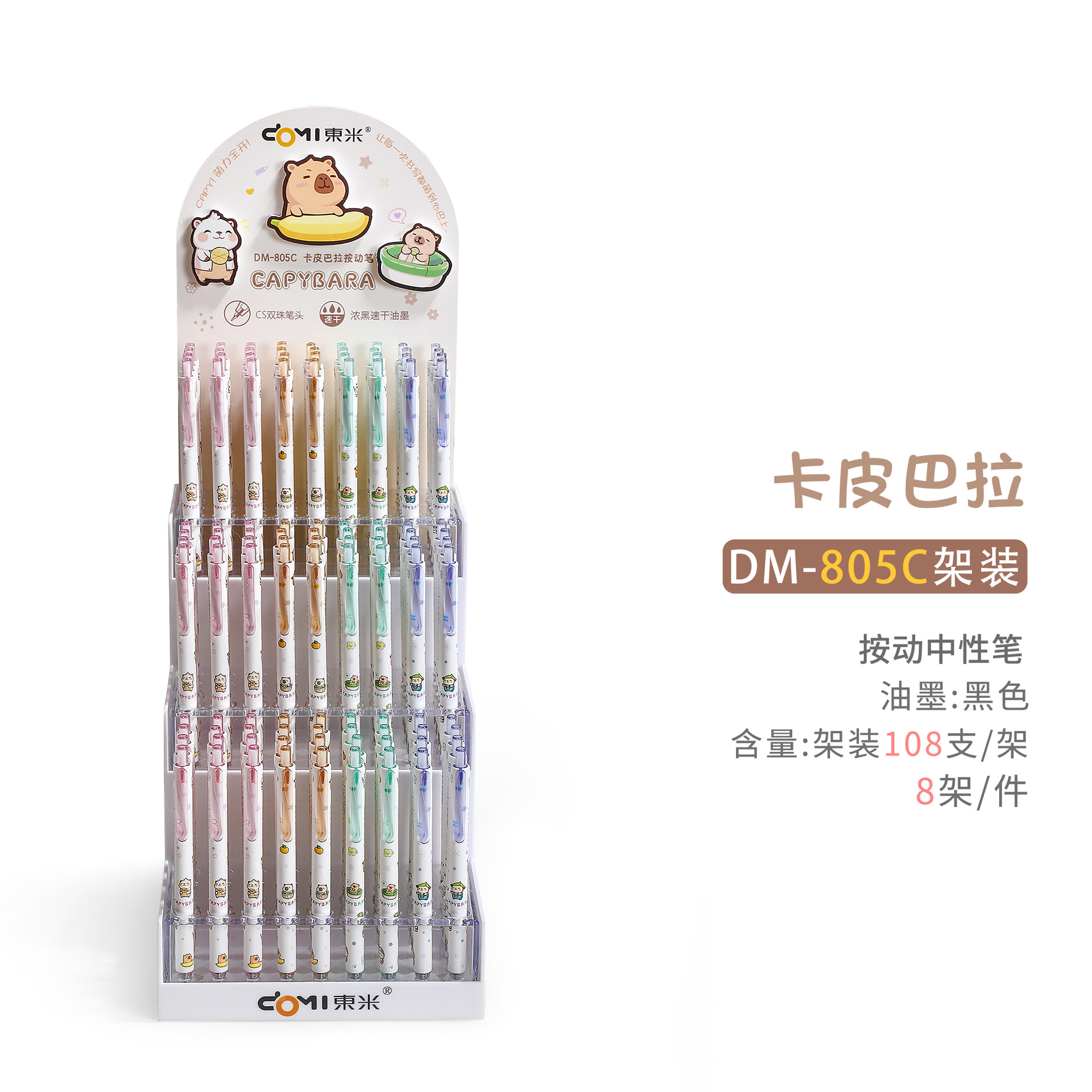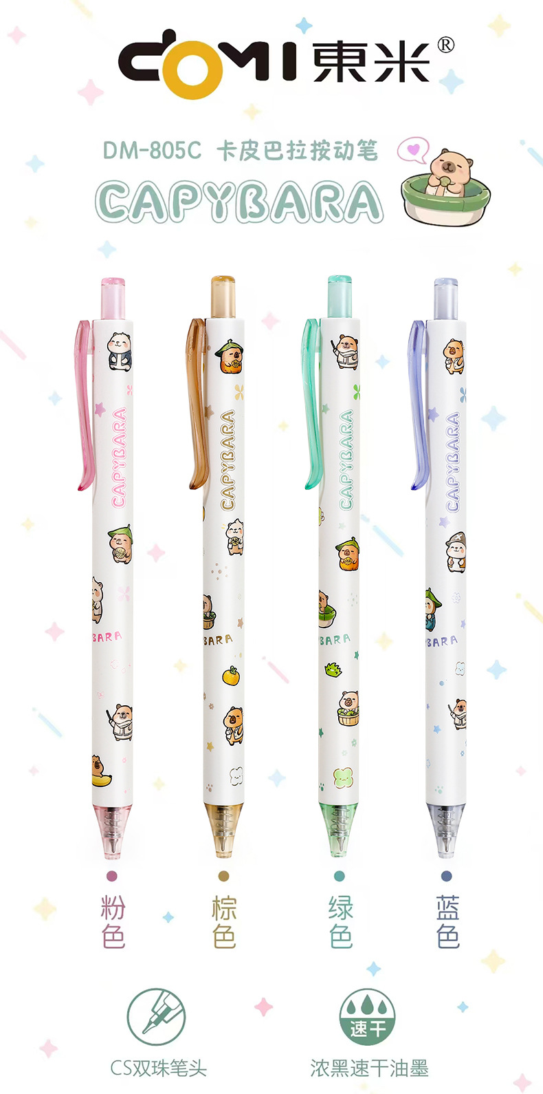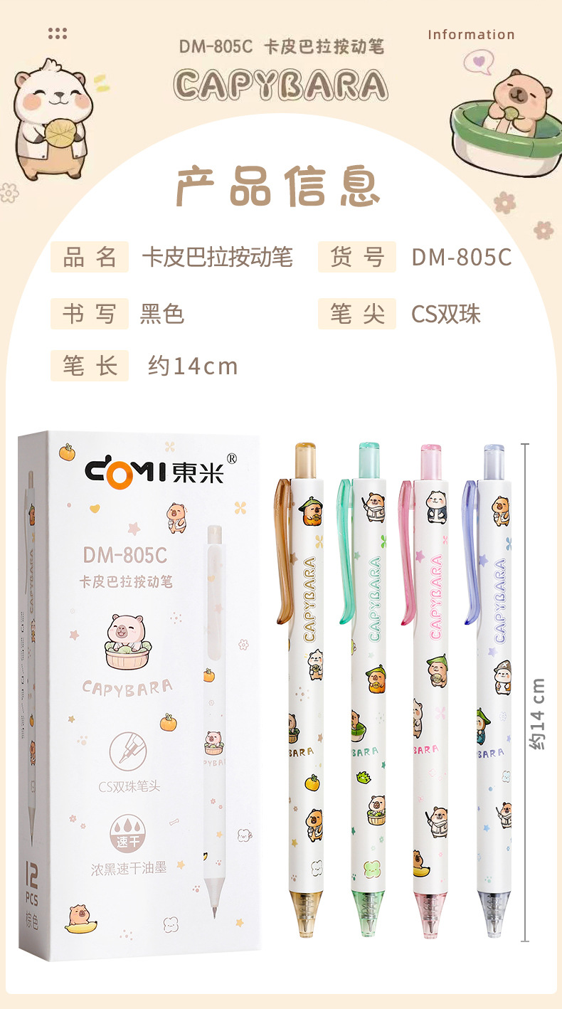 Dongmi 805C Kapibala 프레스 젤 펜 귀여운 만화 초등학생 속건성 브러쉬 펜 검정색 펜 0.5CS