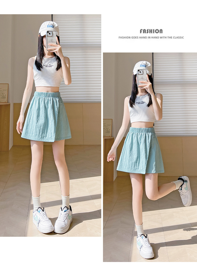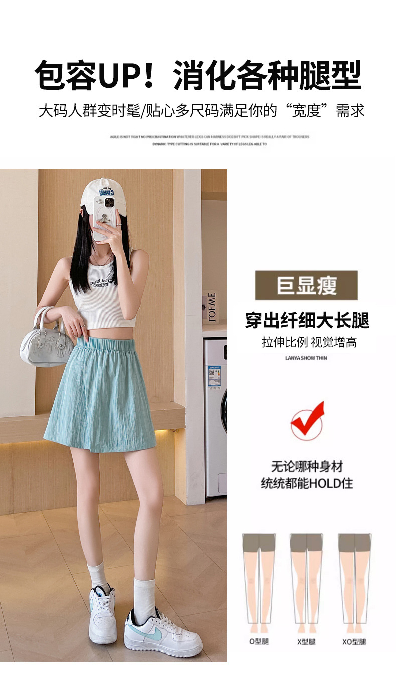 슬리밍 2025 속건성 원단 여름 연령 감소 통기성 A 라인 신축성있는 허리 슬리밍 슈퍼 짧은 핫 소녀 스커트 여성용스토어 가기