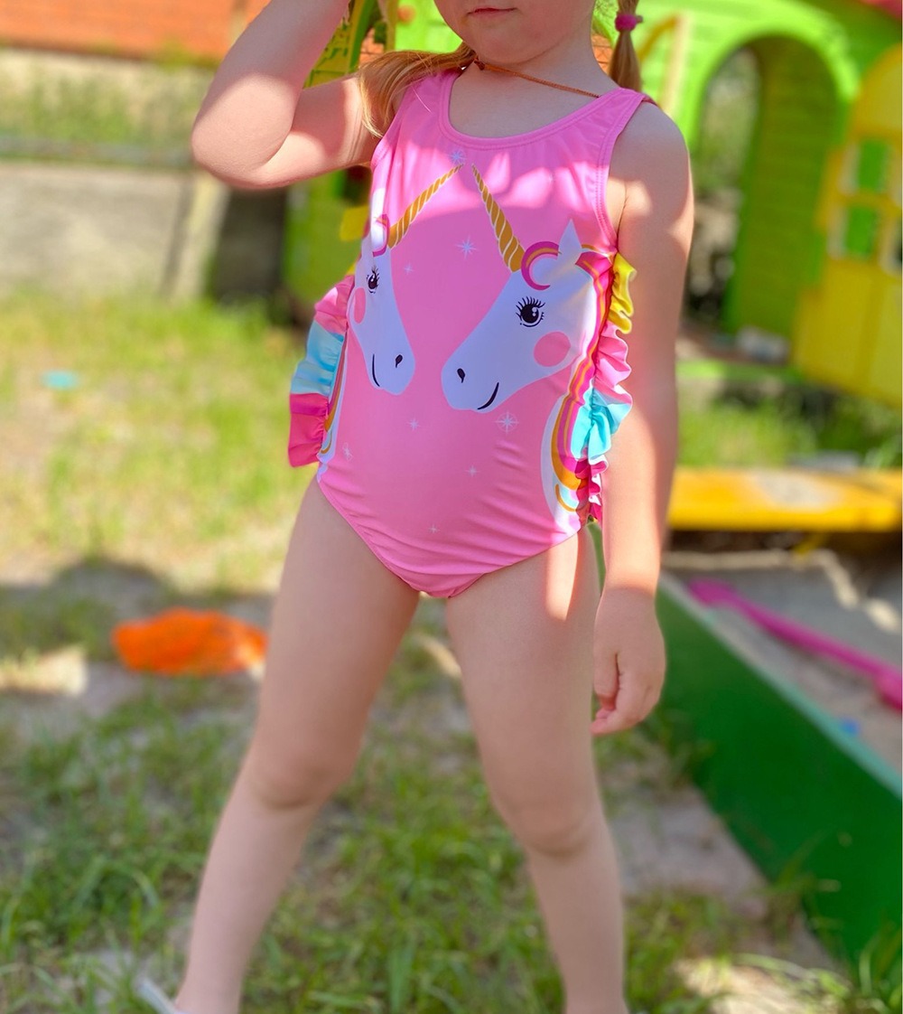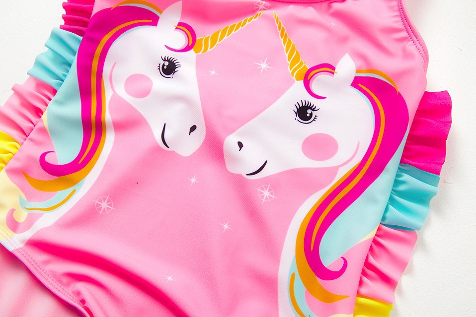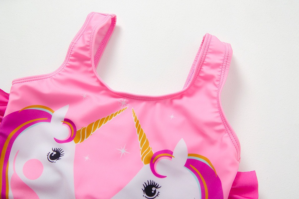 2025 새로운 국경 간 어린이 수영복 소녀 만화 유니콘 원피스 수영복 프릴 소녀 수영복스토어 가기