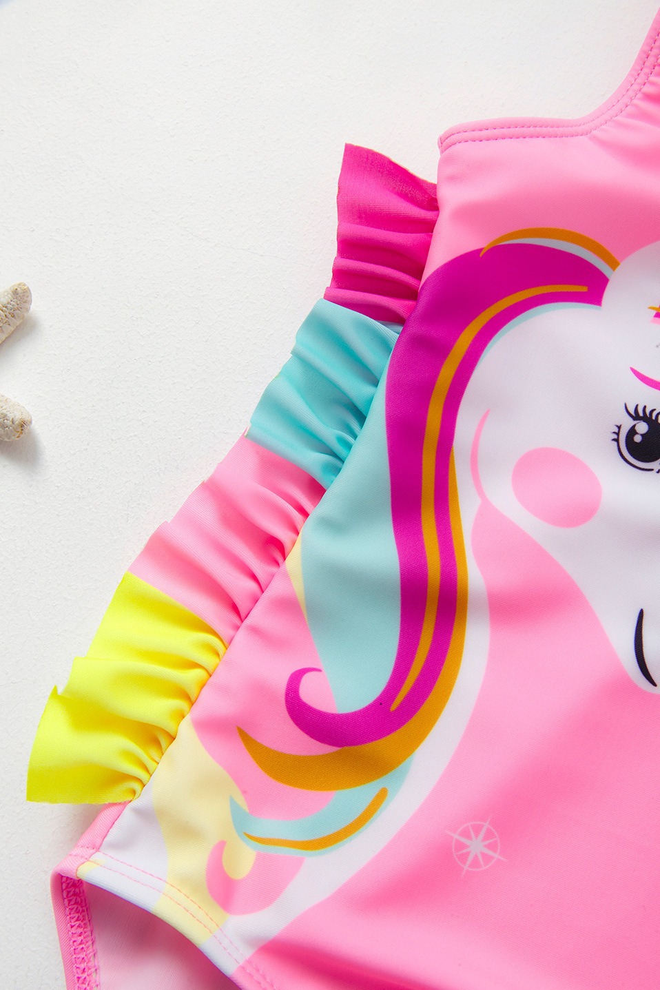 2025 새로운 국경 간 어린이 수영복 소녀 만화 유니콘 원피스 수영복 프릴 소녀 수영복