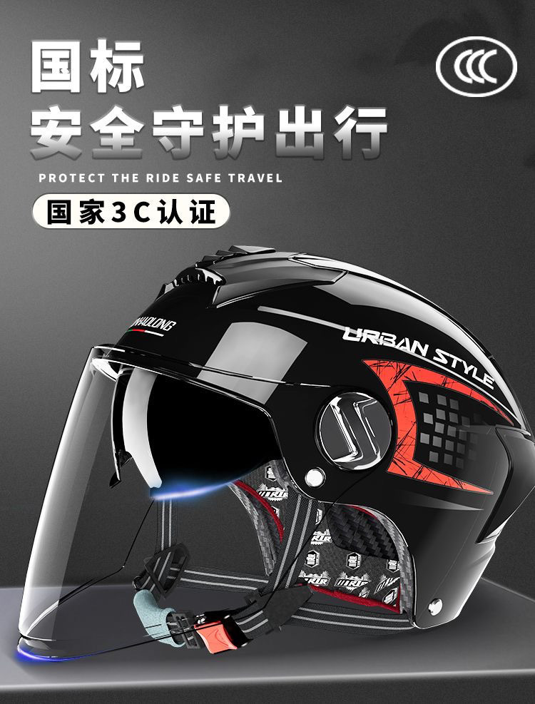 인증된 국가 표준 전기 병 오토바이 사계절 안전 헬멧 여름 자외선 차단 경량 반 헬멧 하이 엔드
