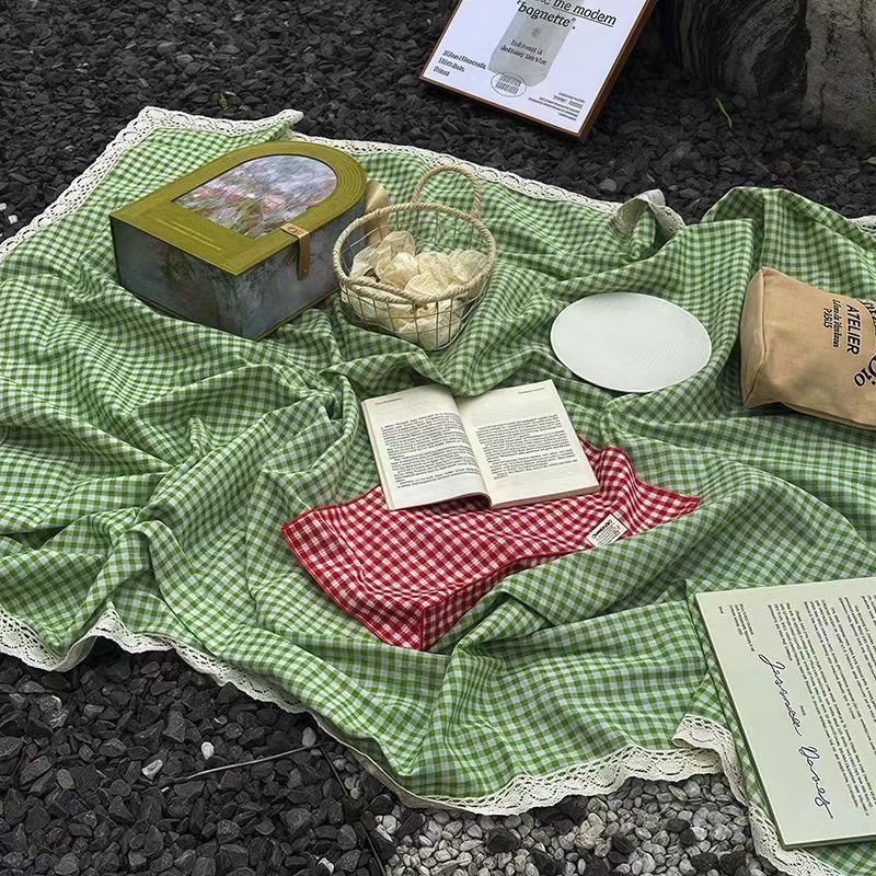 봄 나들이 야외 피크닉 매트 레이스 붉은 격자 무늬 두꺼운 방습 휴대용 바닥 매트 캠핑 사진 촬영 해변 매트