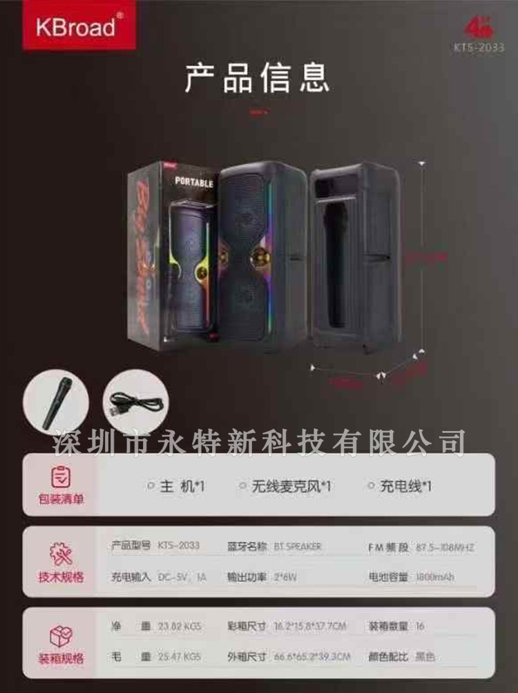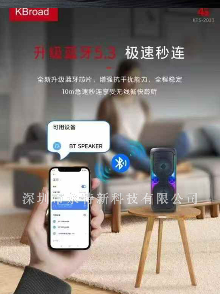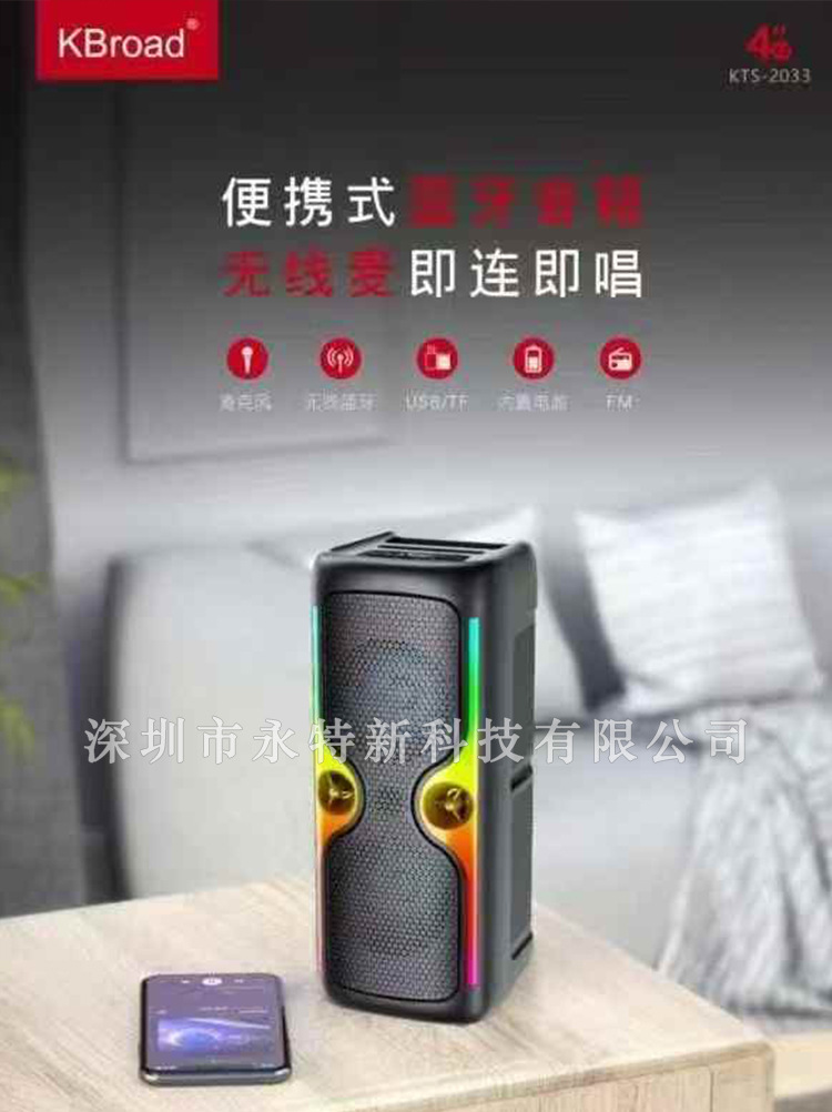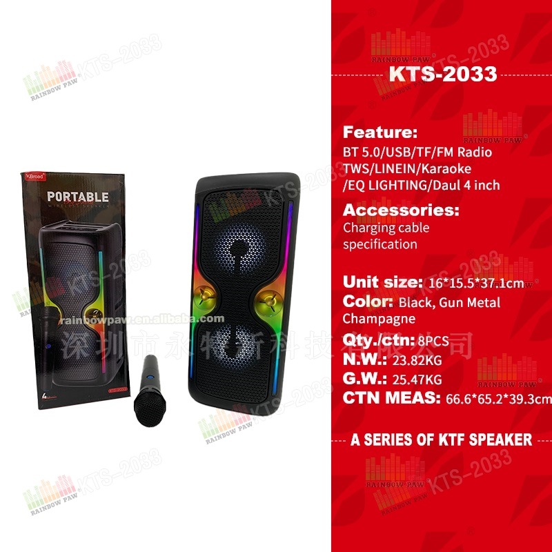 KTS 공장 도매 KTS 시리즈 KTS-2033 휴대용 듀얼 4inch 무선 RGB 블루투스 스피커