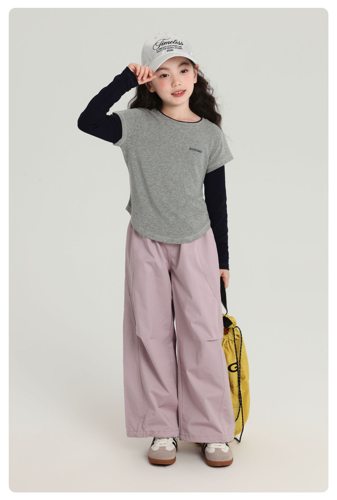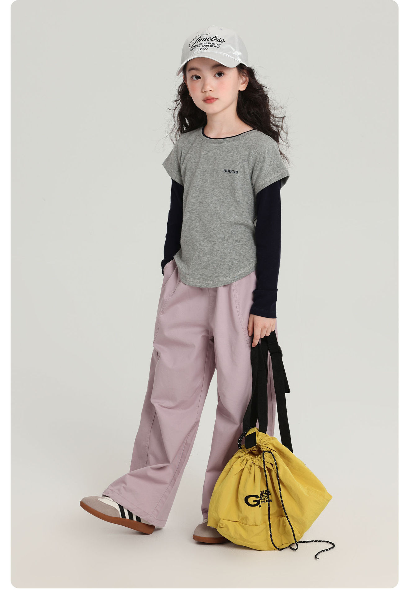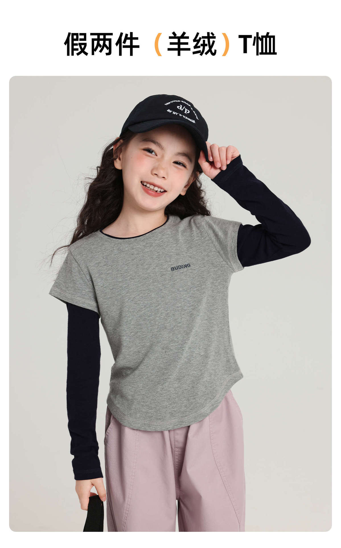 Pudding Haru 아동용상의 소녀 심플 긴팔 2025 가을 신작 아동용 가짜 투피스 캐시미어 바닥 셔츠