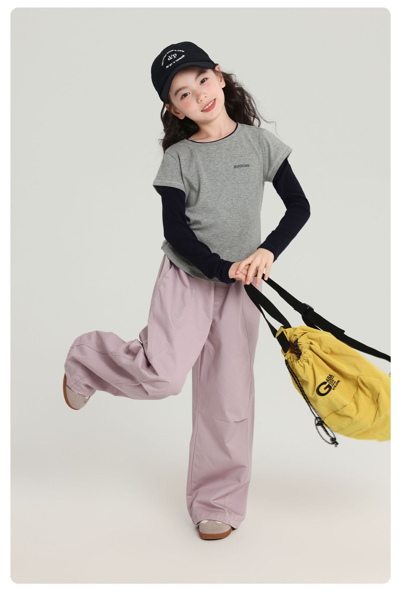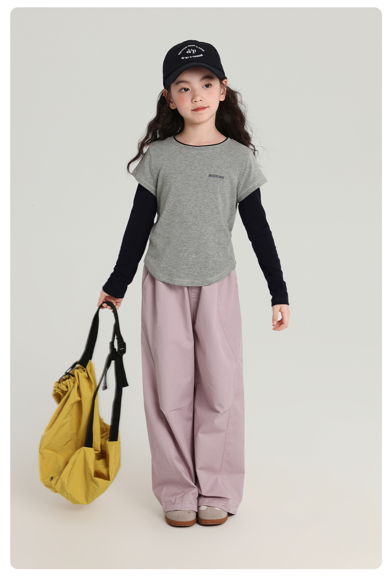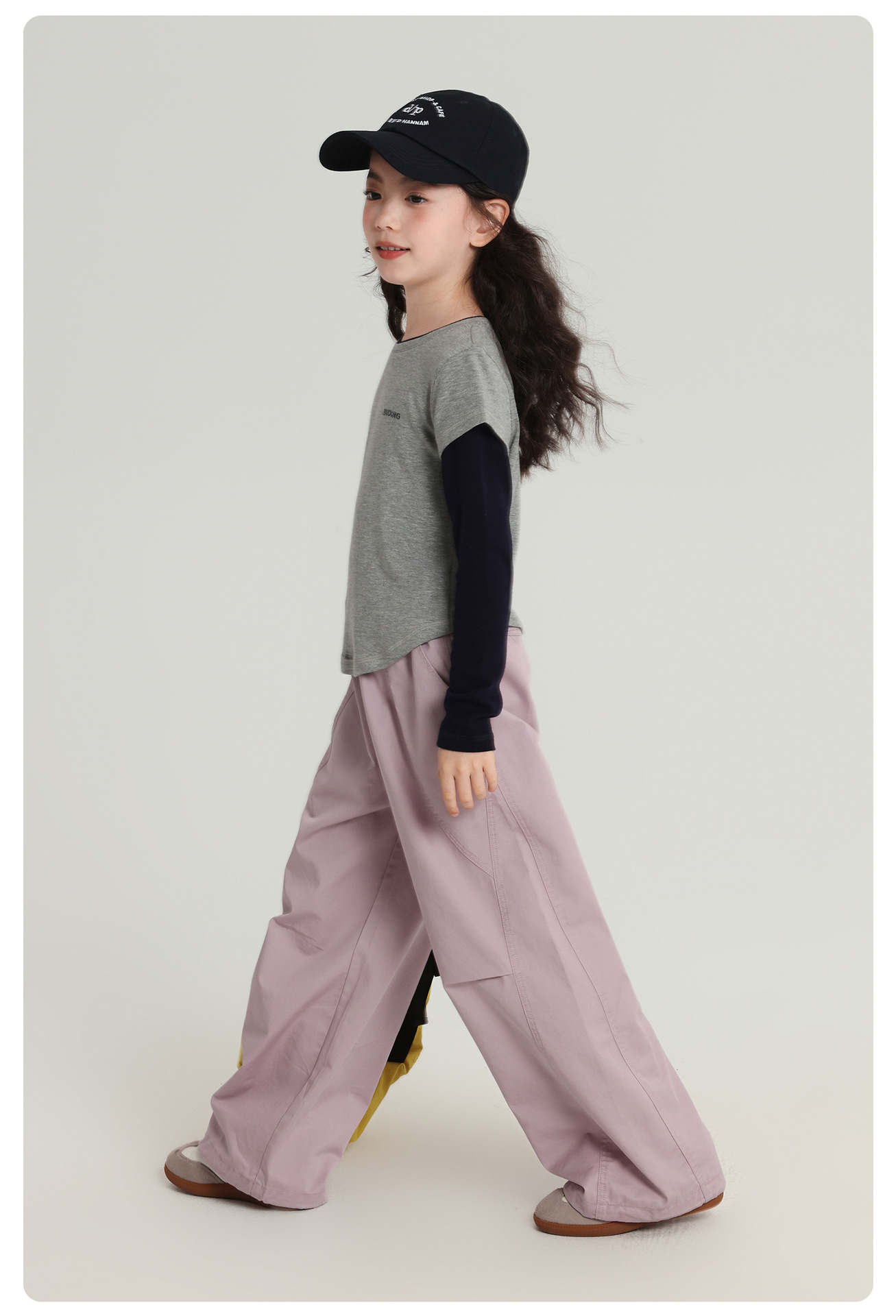Pudding Haru 아동용상의 소녀 심플 긴팔 2025 가을 신작 아동용 가짜 투피스 캐시미어 바닥 셔츠